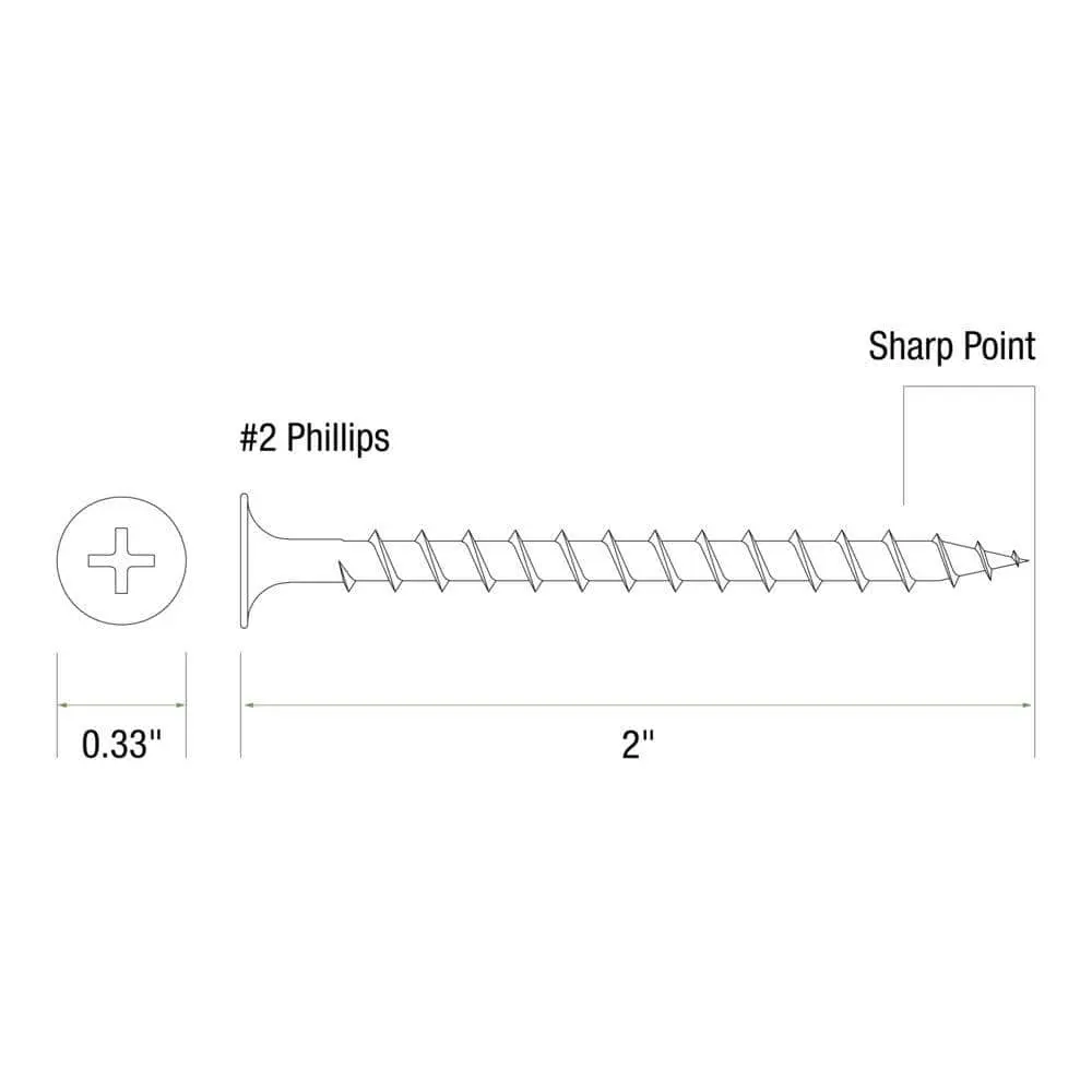 The Grip-Rite2CDWS1 #6 x 2 in. #2 Phillips Bugle Head Coarse Thread Sharp Point Drywall Screws are ideal for interior drywall applications. Coated with black phosphate to resist corrosion and enhance mud adhesion, these screws are perfect for securing gypsum drywall to wood studs. Known for their durability and reliability, they are a must-have in the construction industry.