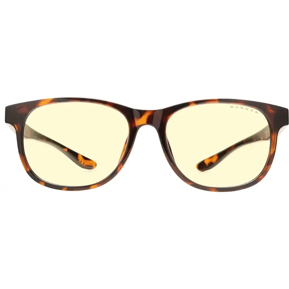 The GUNNAR Rush Computer Glasses feature blue light reduction technology, filtering out harmful blue light to help reduce eye strain during extended screen time. The amber lenses enhance contrast and minimize glare, providing a more comfortable viewing experience. With their tortoise frame, these glasses offer a stylish and professional look. Designed for comfort, they are lightweight and ideal for prolonged wear, helping protect your eyes and improve your overall digital experience
