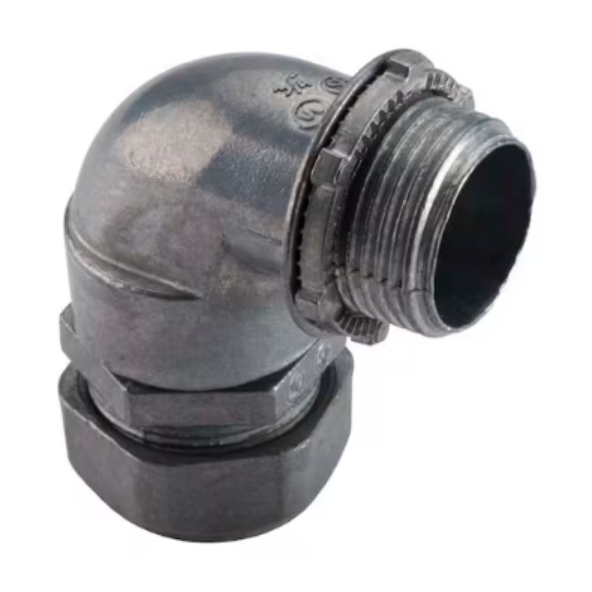 Introducing the Halex 3/4 inch 90° EMT Compression Connector, meticulously crafted to connect and securely bond EMT conduit to steel outlet boxes, load centers, and other metal enclosures, particularly in spaces requiring a tight 90° radius. Constructed from durable die-cast zinc alloy, this connector ensures strength and reliability in various installation environments. Ideal for cramped locations and tight corners where larger-radius conduit elbows may not be suitable, this connector offers versatility and convenience. Furthermore, it meets the stringent requirements outlined by both UL and CSA, guaranteeing compliance and safety in electrical installations.