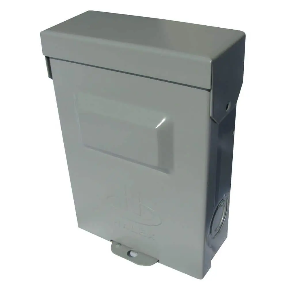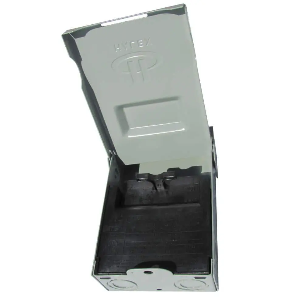 The Halex 60 Amp 240-Volt Non-Fuse Metallic AC Disconnect is designed to safely disconnect power from an air conditioning unit, ensuring secure working conditions. This non-fuse, puller-style disconnect is UL listed and features an enclosed pull-out switch. It is compatible with both copper and aluminum lug wire, with a range of 14-3.
