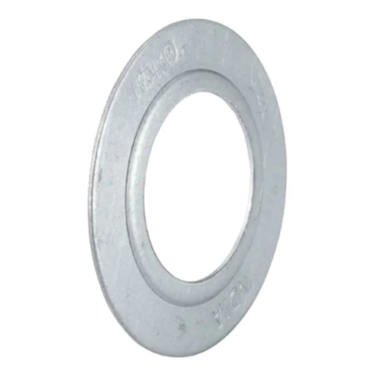 The 1-1/2 inch to 1 inch Reducing Washer is expertly crafted to decrease the size of the knockout in a steel outlet box or any other metal enclosure, ensuring a snug fit for electrical conduits. Installation requires one washer inside the enclosure opening and another on the outside. These washers are meticulously designed to meet the stringent requirements set by UL and CSA, guaranteeing compliance with industry standards for safety and quality.