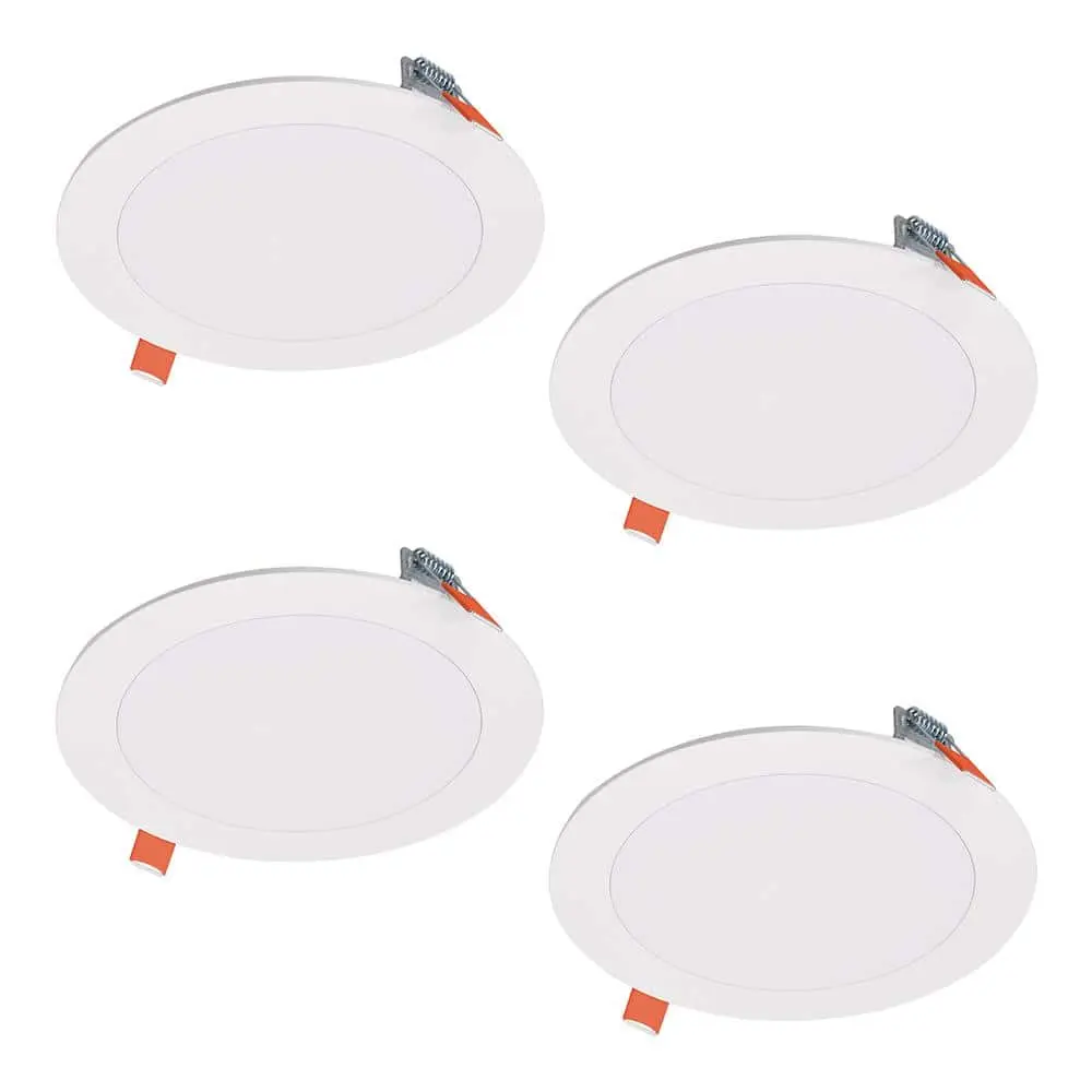 The Halo HLB6 Selectable 4-Pack is a complete ultra-thin, direct-mount downlight that allows you to choose your color temperature directly on the fixture. With a simple switch, you can select from 3 color temperatures, ranging from soft 3000K to daylight 5000K, before installation. Designed for new construction, remodels, and retrofits, this fixture requires no housing or j-box. It includes a 120-Volt dimmable LED driver and features a soft lens for uniform illumination. Additionally, it is wet-location listed, making it suitable for various environments.