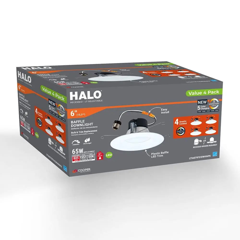The HALO LT LED retrofit offers an energy-efficient lighting solution, ideal for both new construction and remodel housings. With a simple switch, you can select from 5 color temperatures, ranging from warm (2700K) to daylight (5000K). Available in 4-inch and 5/6-inch apertures, the LT series is perfect for general area downlighting in retrofit, remodel, or new construction settings.