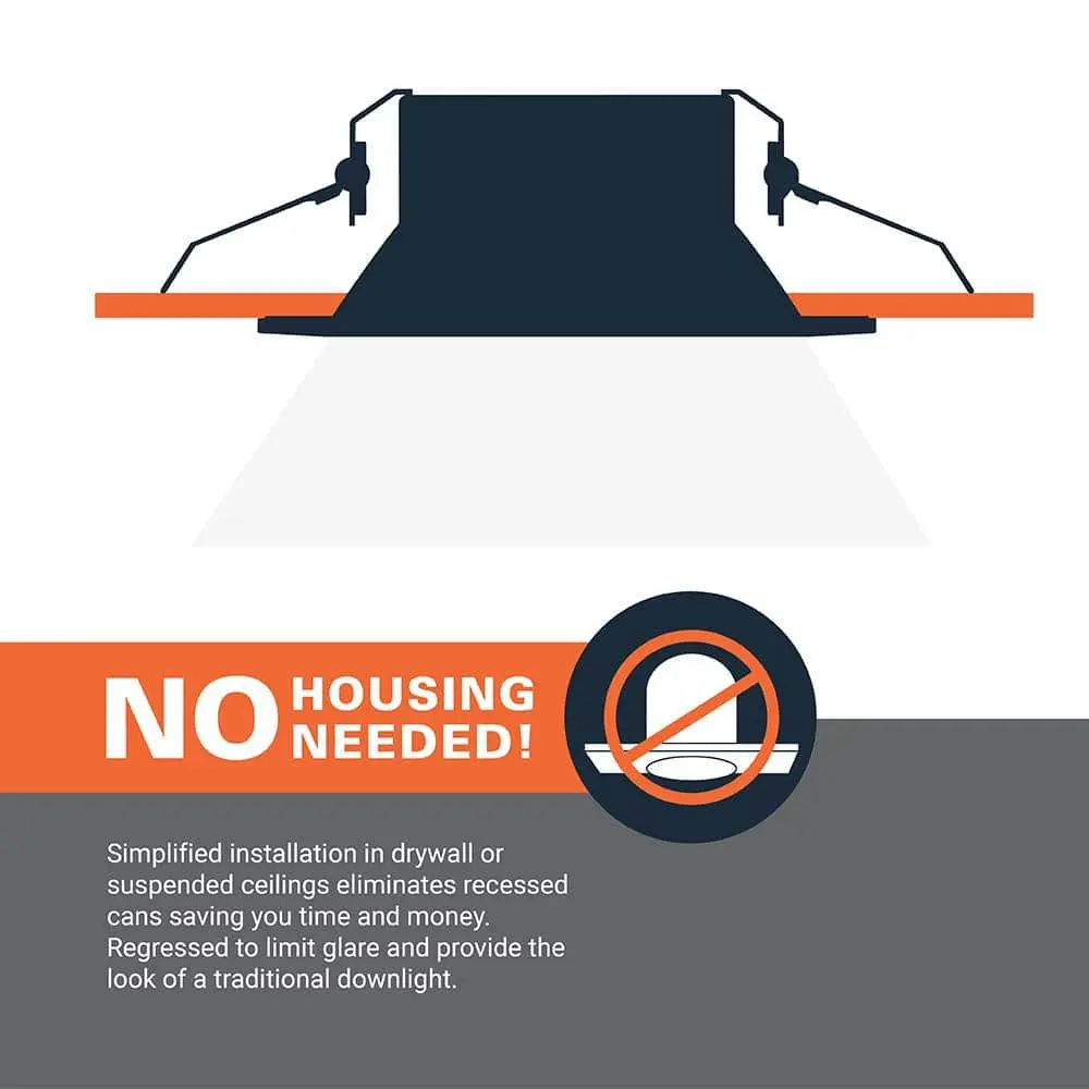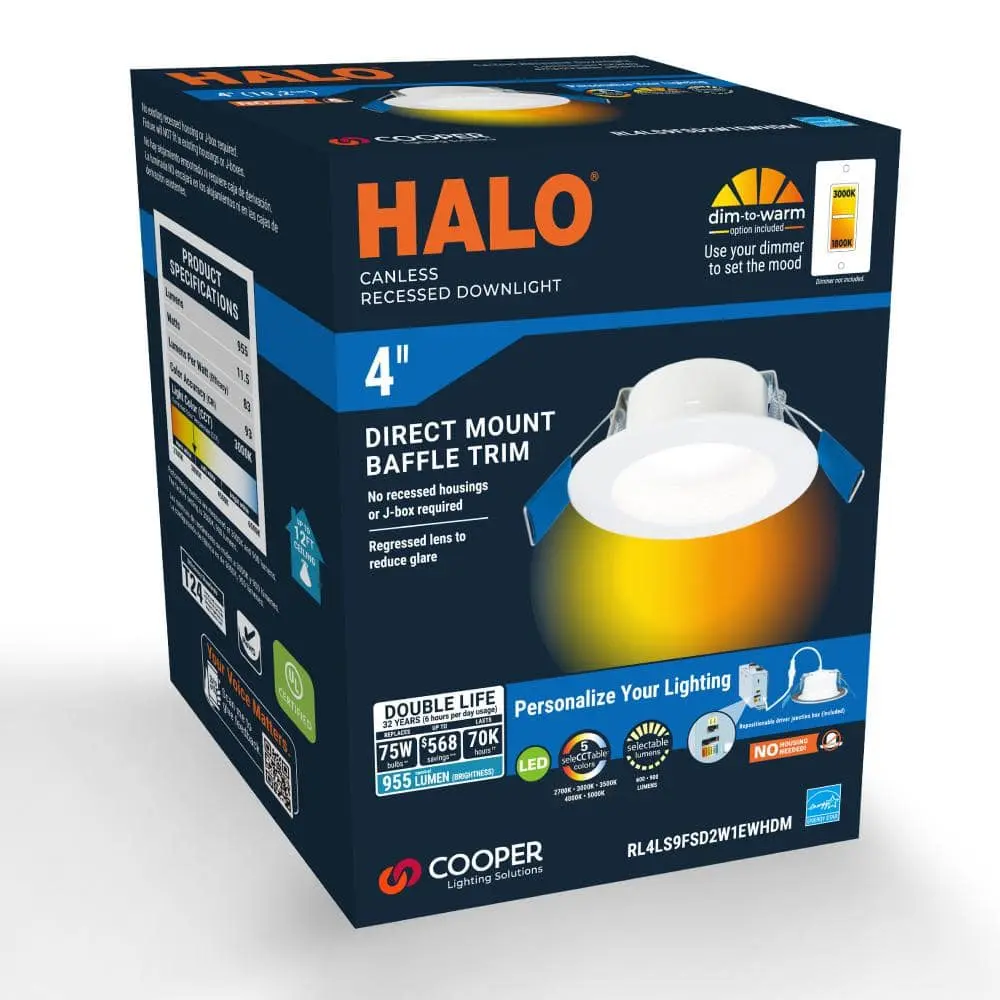 The HALO RL canless downlights are designed for easy installation without the need for a housing or junction box. You can select your desired color temperature directly on the fixture with a simple switch, offering five options from warm (2700K) to daylight (5000K). The warm dimming feature allows you to create a cozy candlelight effect, perfect for setting the mood. With selectable lumen options for added flexibility, the RL series is an ideal choice for general downlighting in retrofit, remodel, or new construction projects.