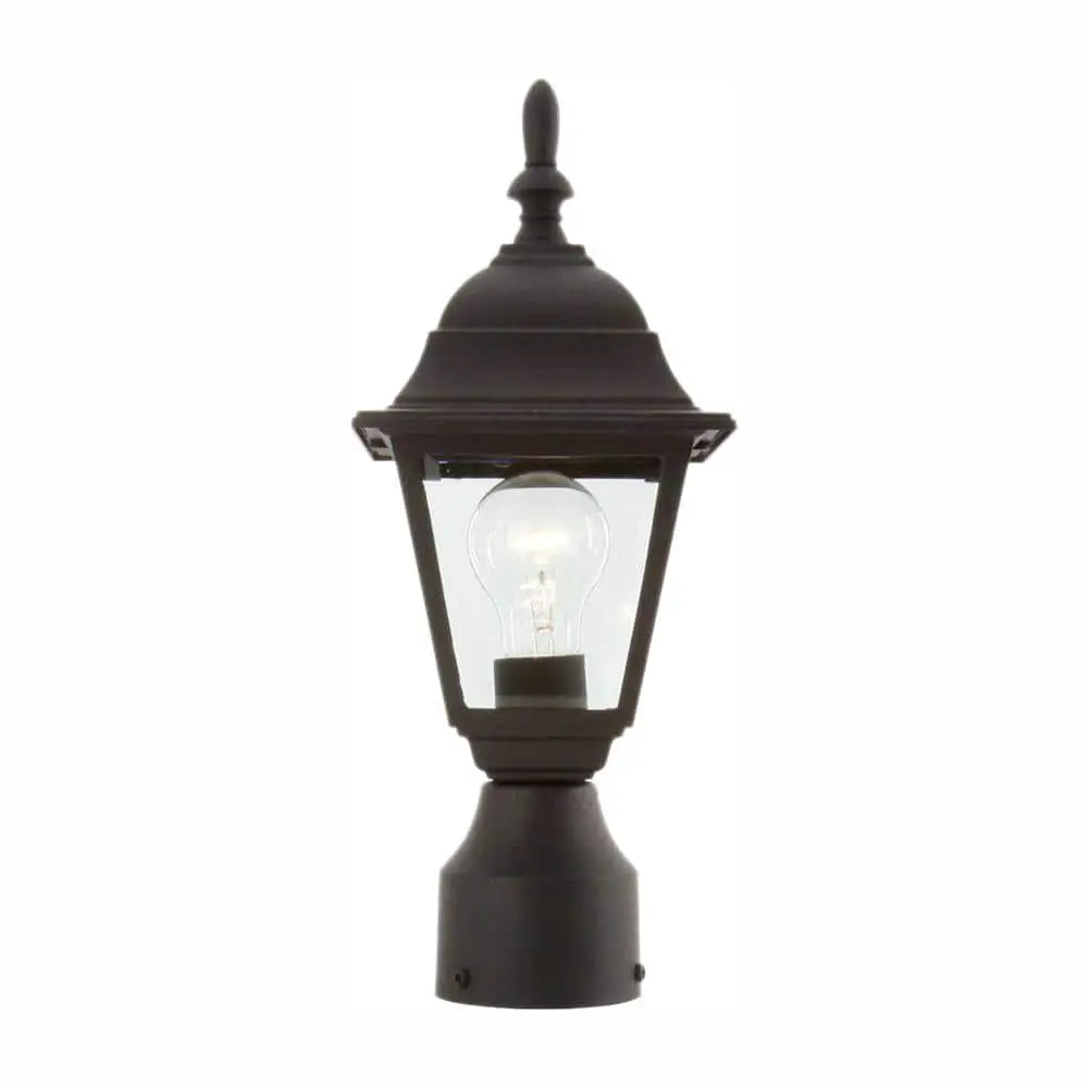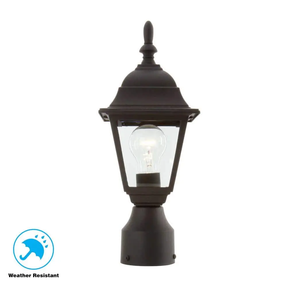 The Hampton Bay 1-Light Outdoor Post Lamp features a timeless square housing design with a durable black finish. Its crystal-clear beveled glass enhances the classic look, making it a perfect addition to driveways, patios, and other outdoor spaces. Designed to accommodate a standard bulb up to 60-Watt (not included).