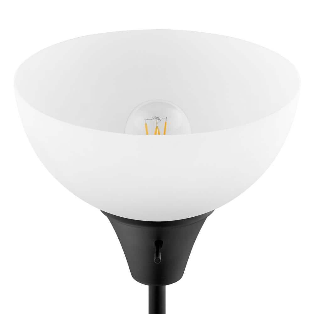 This 1-Light torchiere floor lamp, standing 70 inches tall with a sleek black finish and a matching plastic shade, adds a modern touch to your home dor. Designed to enhance your living space with stylish and contemporary lighting, it accommodates an E26 1 x 100-Watt 3-way Type A bulb (not included). The convenient rotary switch allows you to adjust the brightness to your preference. The lamp is ETL certified, ensuring safety and quality.