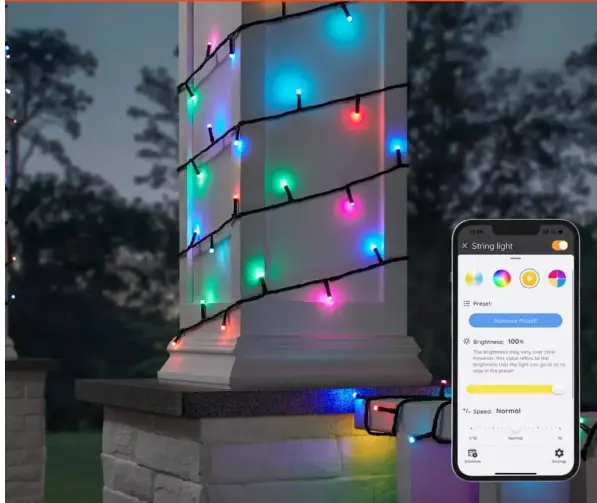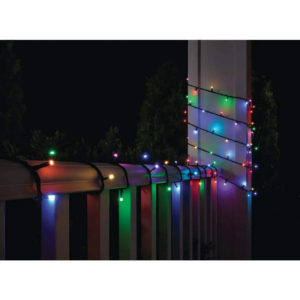 Transform your indoor and outdoor spaces with the Hampton Bay Smart 40 ft. Color-Changing Music Sync String Lights powered by Hubspace. This 100-light string features a party mode that syncs the lights to your music, creating a dynamic atmosphere for gatherings, parties, and special events. With the easy-to-use Hubspace app, you can customize the colors and patterns of the lights, or choose from built-in themes. The app offers access to millions of color options, including warm and cool white, to match any occasion. Each set includes 100 weather-resistant LED bulbs, spanning 40 feet, with the option to connect up to two sets together for extended coverage.