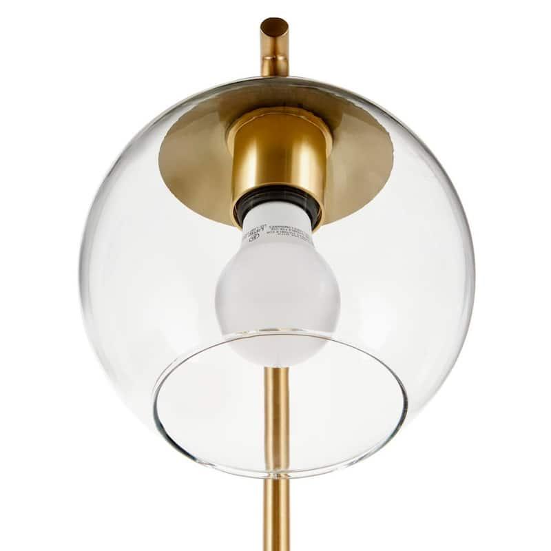 Ideal for enhancing any space with warm, ambient light, this understated statement piece fits seamlessly into your home. Its mid-century modern design features an antique brass finish that contrasts beautifully with the clear glass, textured globe shade. The lamp does not include a bulb, allowing you to choose the perfect one for your needsa clear LED bulb is excellent for a workspace, while a vintage Edison bulb adds a stylish touch to a cozy bedroom. A straightforward rotary switch on the base makes it easy to turn the lamp on and off.