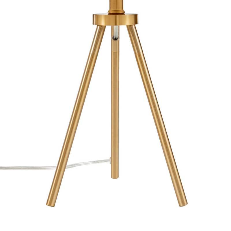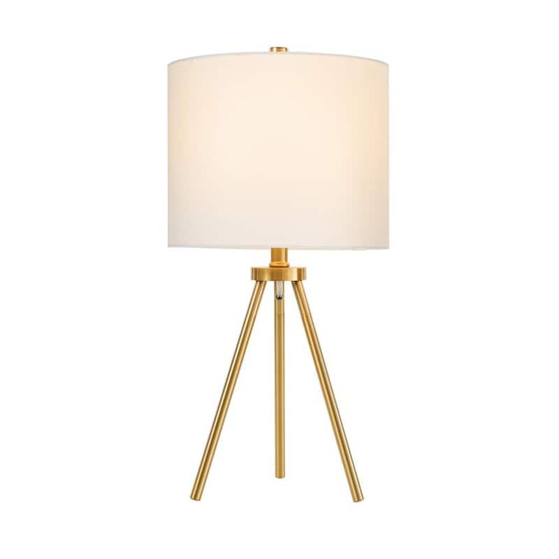 Illuminate your space with timeless elegance using this tri-frame table lamp from the Quinby Collection. Reflecting a classic Mid-century modern style, this lamp combines efficient functionality with effortless sophistication. The antique gold plating is beautifully complemented by a simple yet stylish white fabric shade.