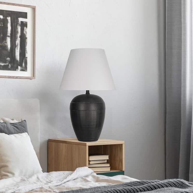 Boasting elegant ginger jar curves and a distressed finish, our Prestwick 1-light table lamp brings a touch of refined style to any space. The base features a vintage black ceramic finish, adding an artisan-inspired charm, while the empire-shaped shade in neutral linen enhances its classic appeal. Ideal for an entryway console, bedroom nightstand, or living room side table, this lamp offers both sophisticated proportions and subtle design.