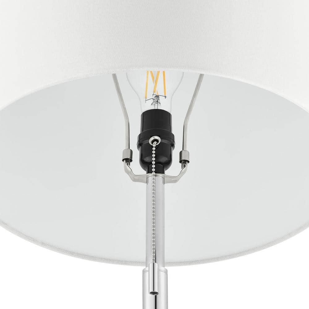 Enhance any room with the sophistication of the Ganton floor lamp. Featuring a timeless design with a striking polished nickel finish, this lamp exudes classic elegance. The contemporary white drum fabric shade casts a warm, ambient glow, while the sturdy, flat metal base adds a touch of style and stability. Whether used to complement existing dor or as a standout piece on its own, this floor lamp will elevate both the brightness and visual appeal of your living space.