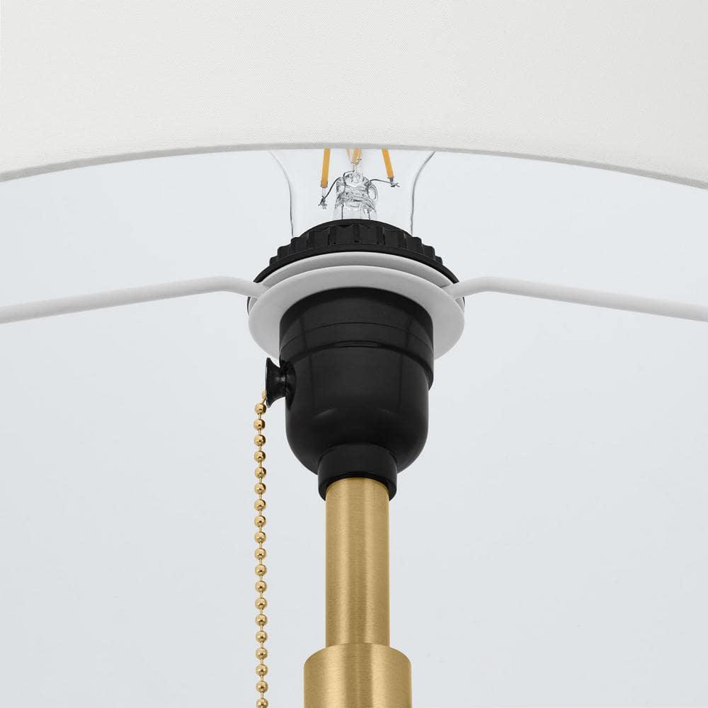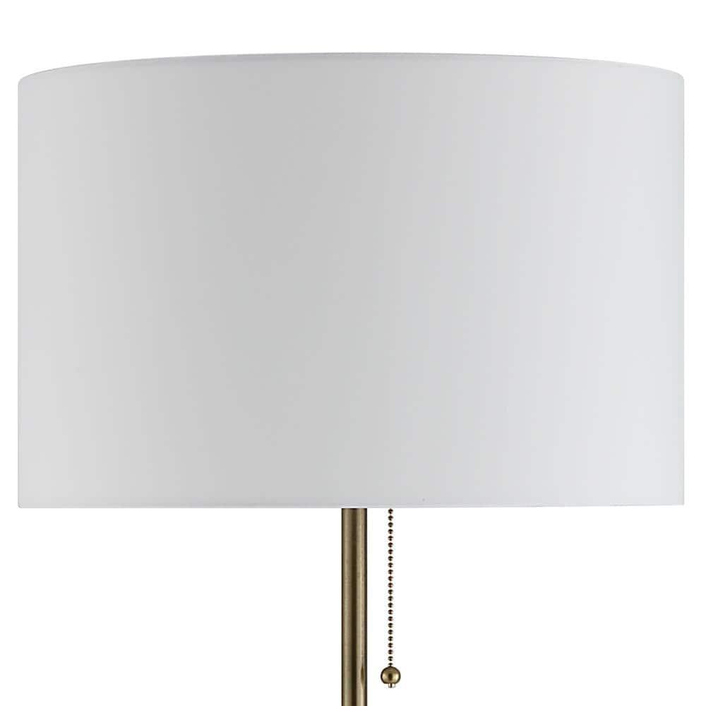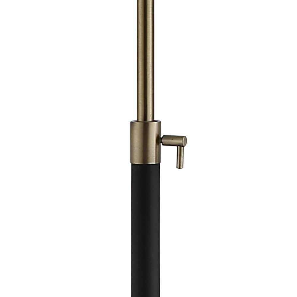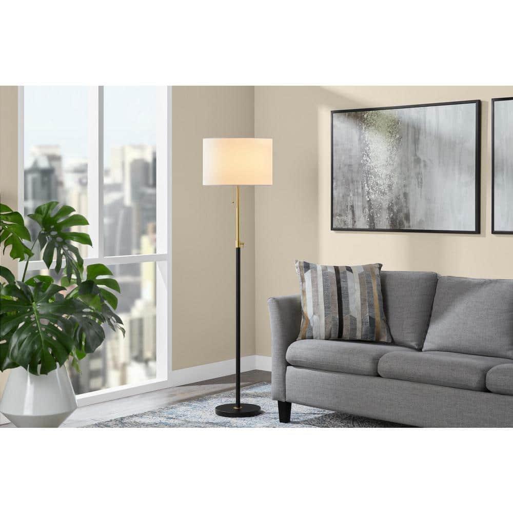 The Alderston adjustable floor lamp is a stylish and versatile lighting fixture designed to enhance your interior dor. Made of metal, it boasts a round base and a slender body with a matte black and antique brass finish. The adjustable height feature allows you to tailor the lamp to your specific lighting and dor needs. It comes with a simple, drum-shaped shade in a soft off-white hue. Finished with a pull chain for easy operation, this floor lamp is perfect for bedrooms, offices, and living rooms.