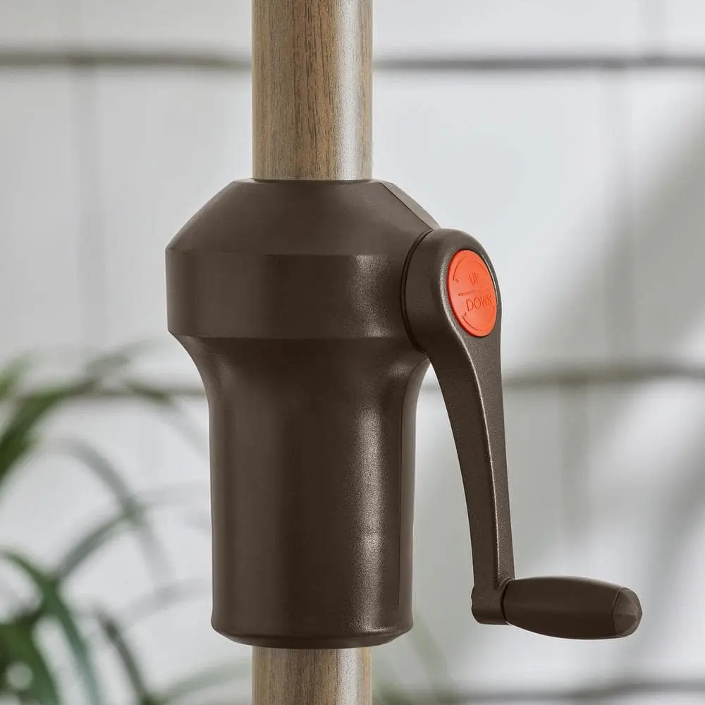 Create a cozy, welcoming space in your garden with this Hampton Bay outdoor patio umbrella. Featuring a sturdy aluminum support pole and steel ribs, it offers reliable stability and support. The crank and auto-tilt mechanism ensures effortless opening and closing, while the durable, weather-resistant polyester canopy withstands heat, cold, and rain. This 7.5-foot umbrella is designed to fit outdoor tables with a 1.5-inch diameter center hole for a seamless pairing.