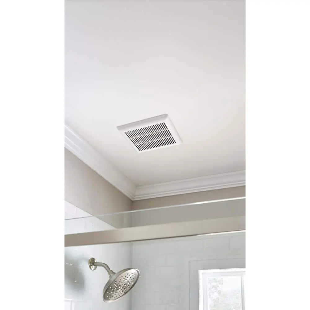 The Hampton Bay 80 CFM exhaust fan reduces moisture suitable in medium bathrooms up to 85 sq. ft. while operating at a moderate 2.0 sones. It features a high-quality AC inductor capacitor motor and a low-profile grille for an attractive look. With a 4-inch outlet for ducting, it efficiently manages airflow and helps prevent mildew growth.