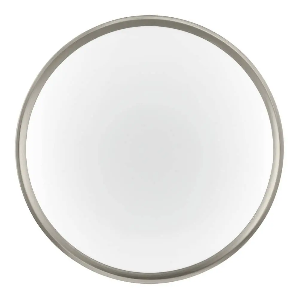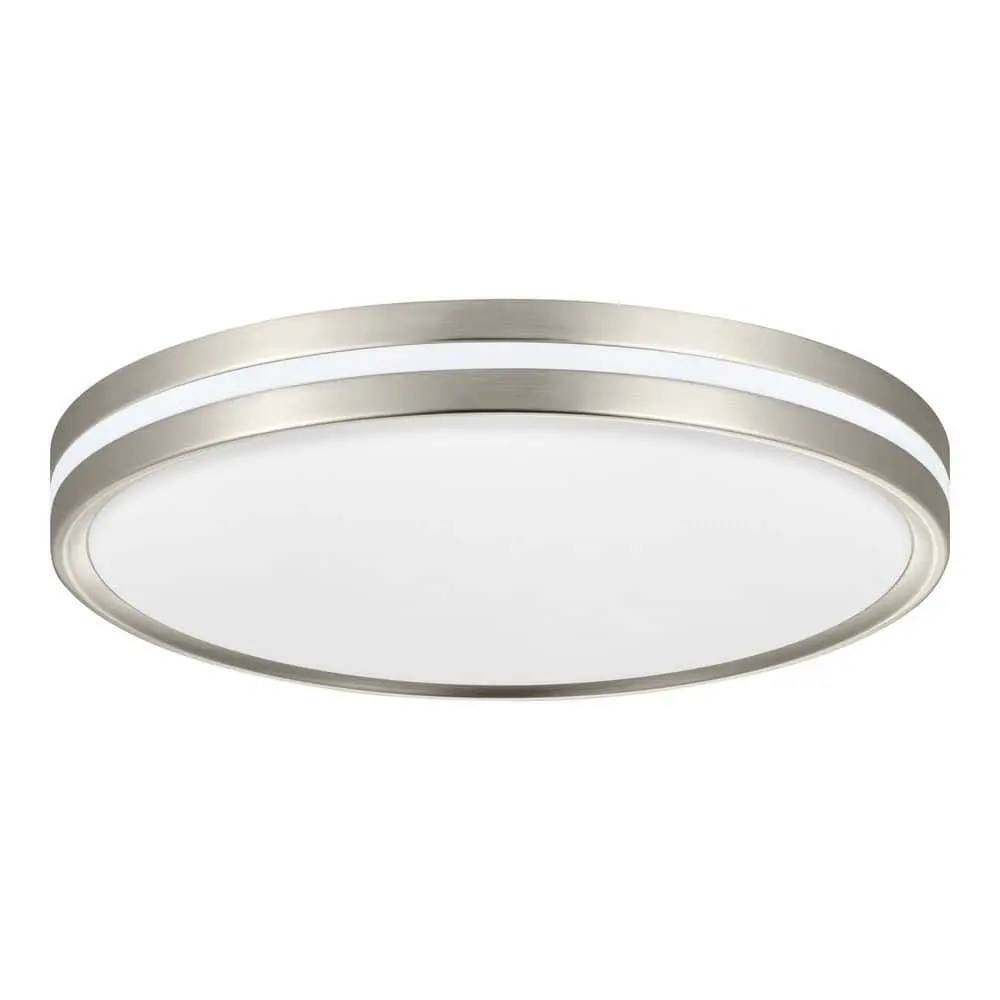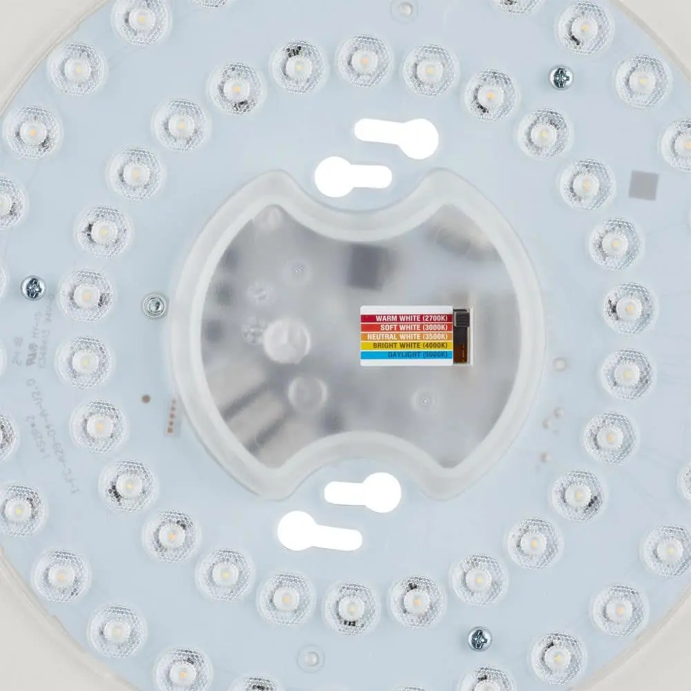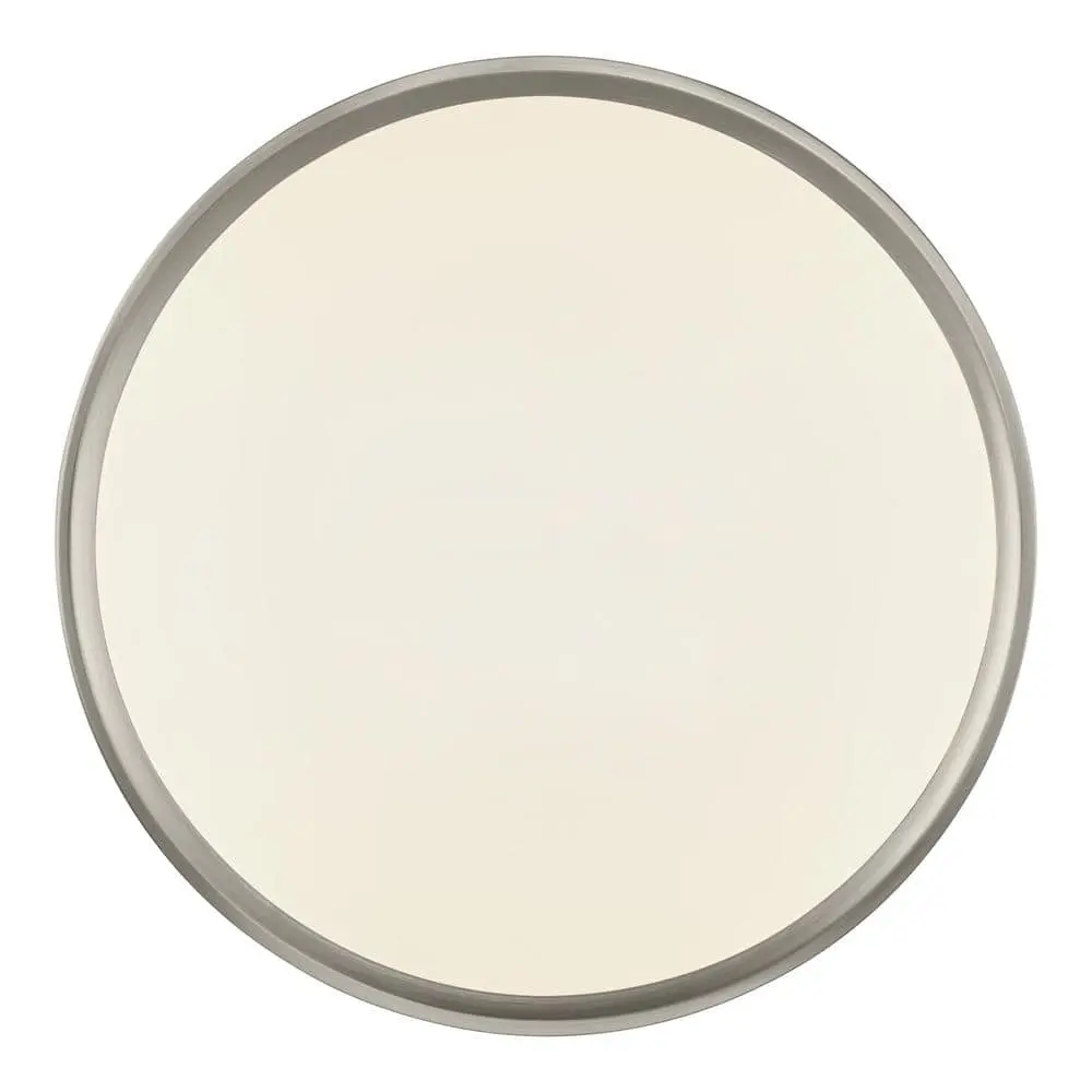 The Hampton Bay ASHBURROW 15 in. LED Flush Mount with a brushed nickel finish and night light mode is the perfect addition to any space. It features a selectable color temperature switch, allowing you to adjust the light from 2700K to 5000K (ranging from warm white to daylight), or switch to night light mode at 2200K. This dimmable fixture offers up to 50,000 hours of use and provides 1700 Lumens, which is equivalent to a 170-Watt incandescent bulb. In night light mode, it emits 100 Lumens. The smooth acrylic shade ensures even light distribution throughout the room.