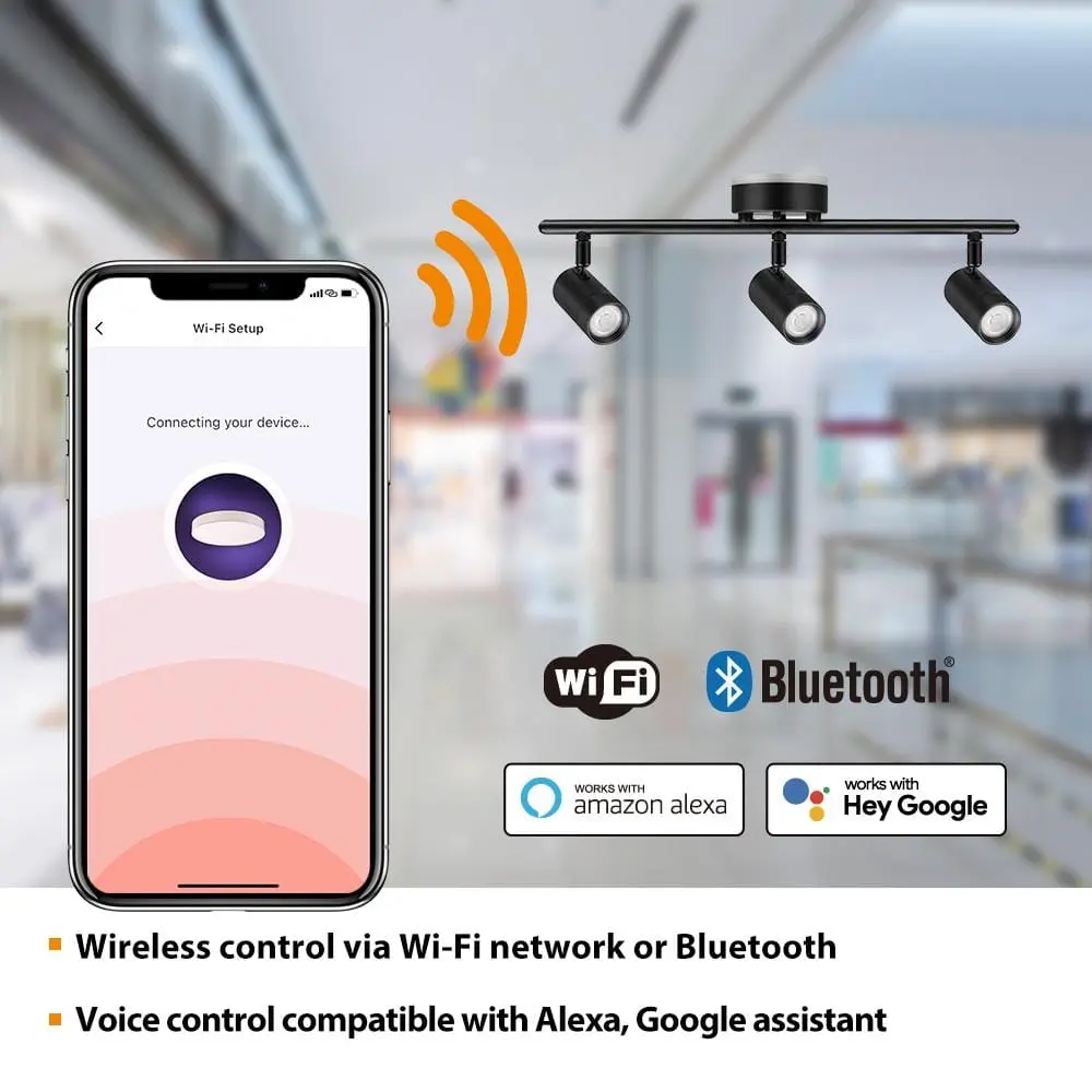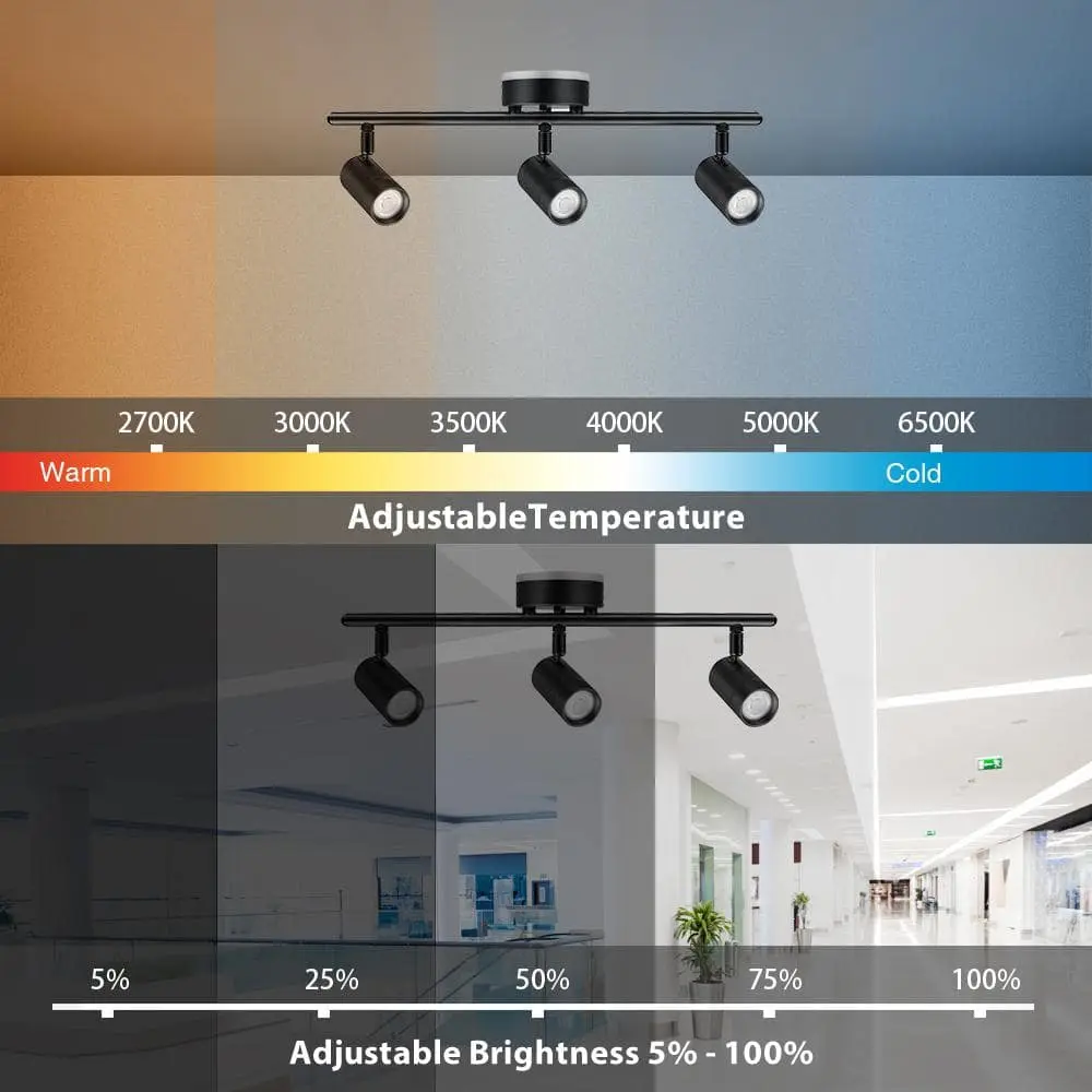 The Hampton Bay LED 3-Light Hubspace Fixed Track Lighting Kit combines modern design with smart functionality. It includes a night light and interchangeable decorative rings, allowing you to customize your space. The LED heads are adjustable, so you can direct light exactly where you need it. Control the lighting through the Hubspace app (no hub required) or use voice commands via Amazon Alexa and Google Assistant. Enjoy endless color options and tunable white light settings ranging from 2700K to 6500K. The light provides a full brightness of 1500 Lumens, and it is also dimmable via the app. The night light mode can be activated either through the Hubspace app or the same wall switch that controls the main light. The kit includes both white and gold rings to match your décor. This fixture is perfect for high-end lighting in kitchens, living rooms, dining rooms, bedrooms, or any room that needs a stylish LED light.