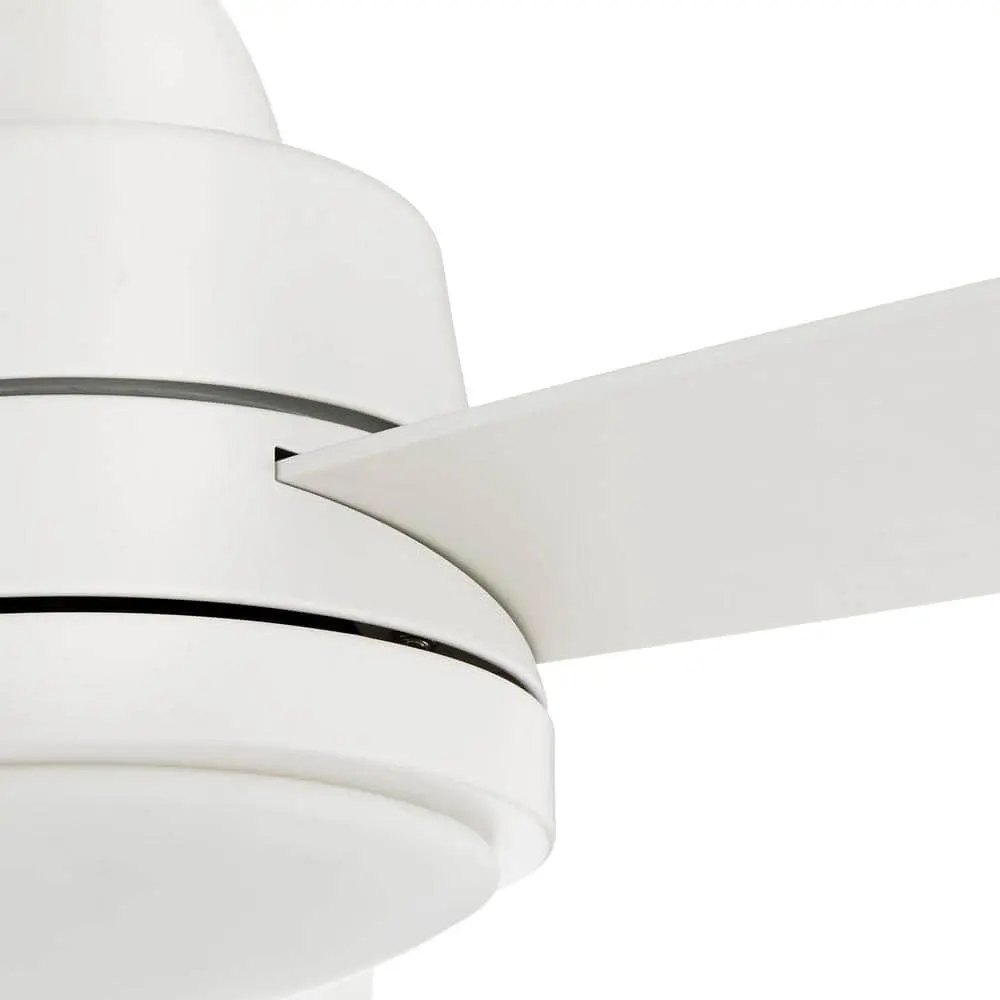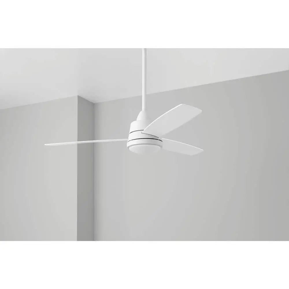 The Hampton Bay Caprice 52 in. Ceiling Fan features a sleek, modern design with a stylish matte white finish. It comes equipped with a remote control for convenient operation, an energy-efficient LED light source, and a twist-on glass shade. The three-speed reversible AC motor ensures optimal airflow, making it a great addition to any indoor space.