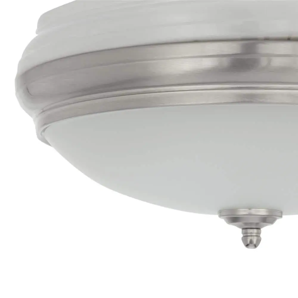 This 11-inch, 20-Watt Brushed Nickel Ceiling Flushmount uses advanced technology with a 90 CRI for superior color rendering, delivering ideal, glare-free illumination that enhances the natural light in your home or office. Thanks to its long-lasting LED technology, it provides light output comparable to a 120-Watt incandescent bulb while consuming less than 20% of the energy, offering significant savings year-round. It also features a selectable color temperature, allowing you to choose from soft 2700K, warm 3000K, bright 3500K, cool 4000K, or daylight 5000K to suit your preferred lighting ambiance.