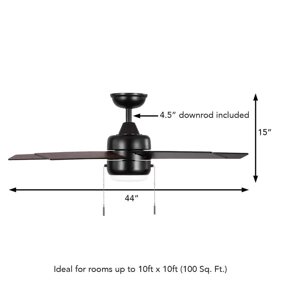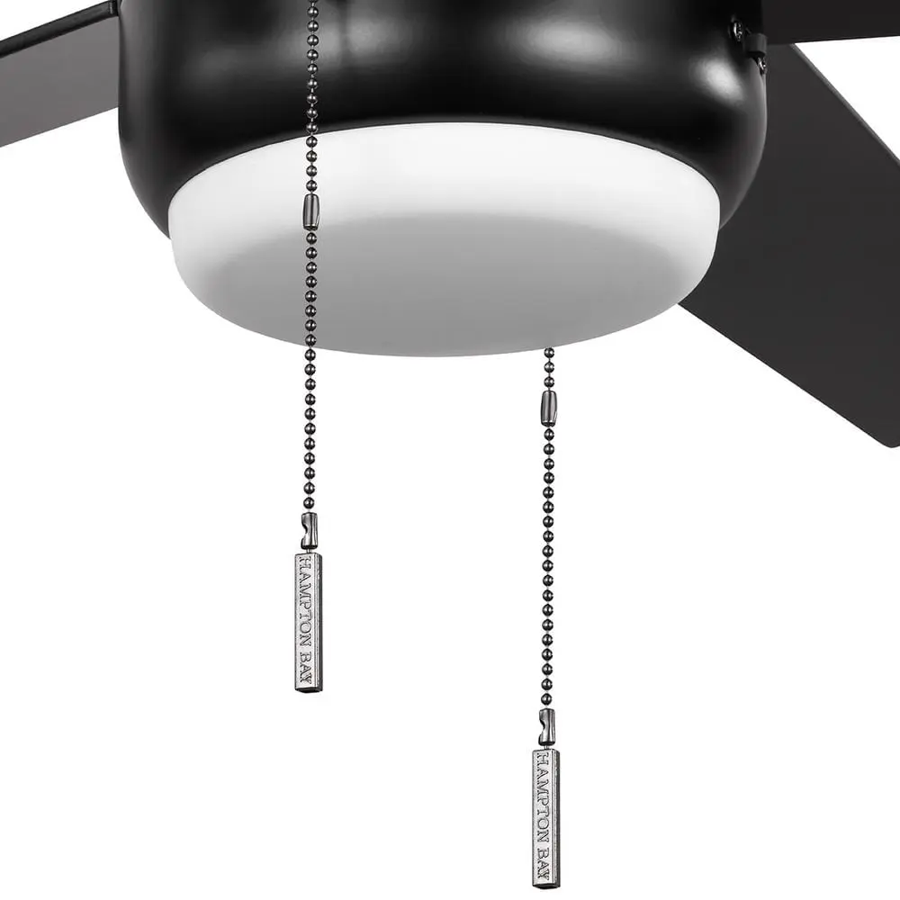 Hampton Bay has refined the award-winning Mena fan to suit smaller rooms, delivering both power and style. The 44-inch Mena fan offers versatile performance with reversible blades, providing flexibility to complement your decor. Perfect for covered outdoor areas like porches or patios, it also enhances indoor spaces. The integrated LED light kit ensures bright illumination, while the shatter-resistant plastic shade mimics frosted glass for added durability. Installation is easy with Quick Fit features, including a slide-on mounting bracket and twist-and-lock light shade.