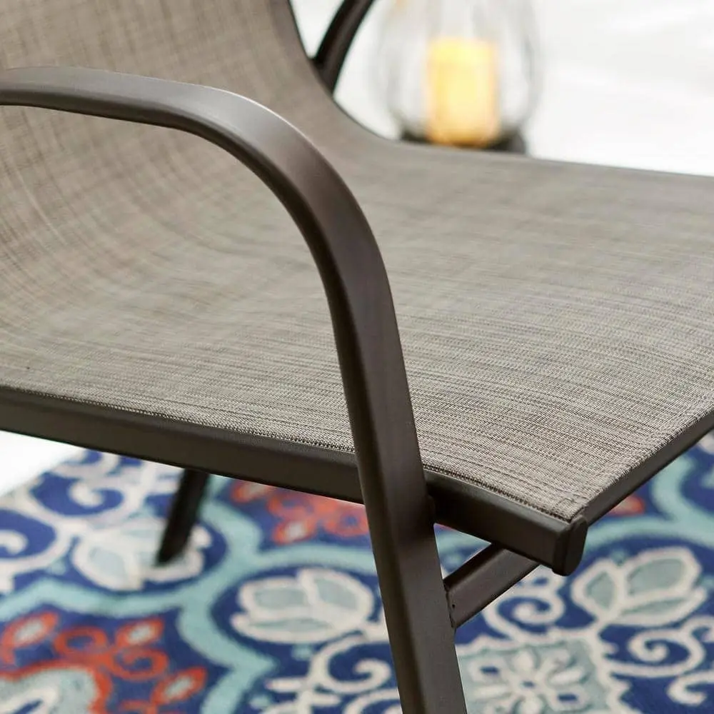 Enhance your outdoor space with the StyleWell Mix and Match Stackable Steel Sling Patio Dining Chair, an ideal seating option for your sunroom, patio, or deck. Featuring a dark brown finish and polyester sling fabric, this chair complements a variety of outdoor decors. Perfect for upgrading your outdoor living or dining area, it boasts a durable steel frame with a powder-coated finish. Stackable for easy storage, this chair can be paired with a patio dining table to create a personalized look.