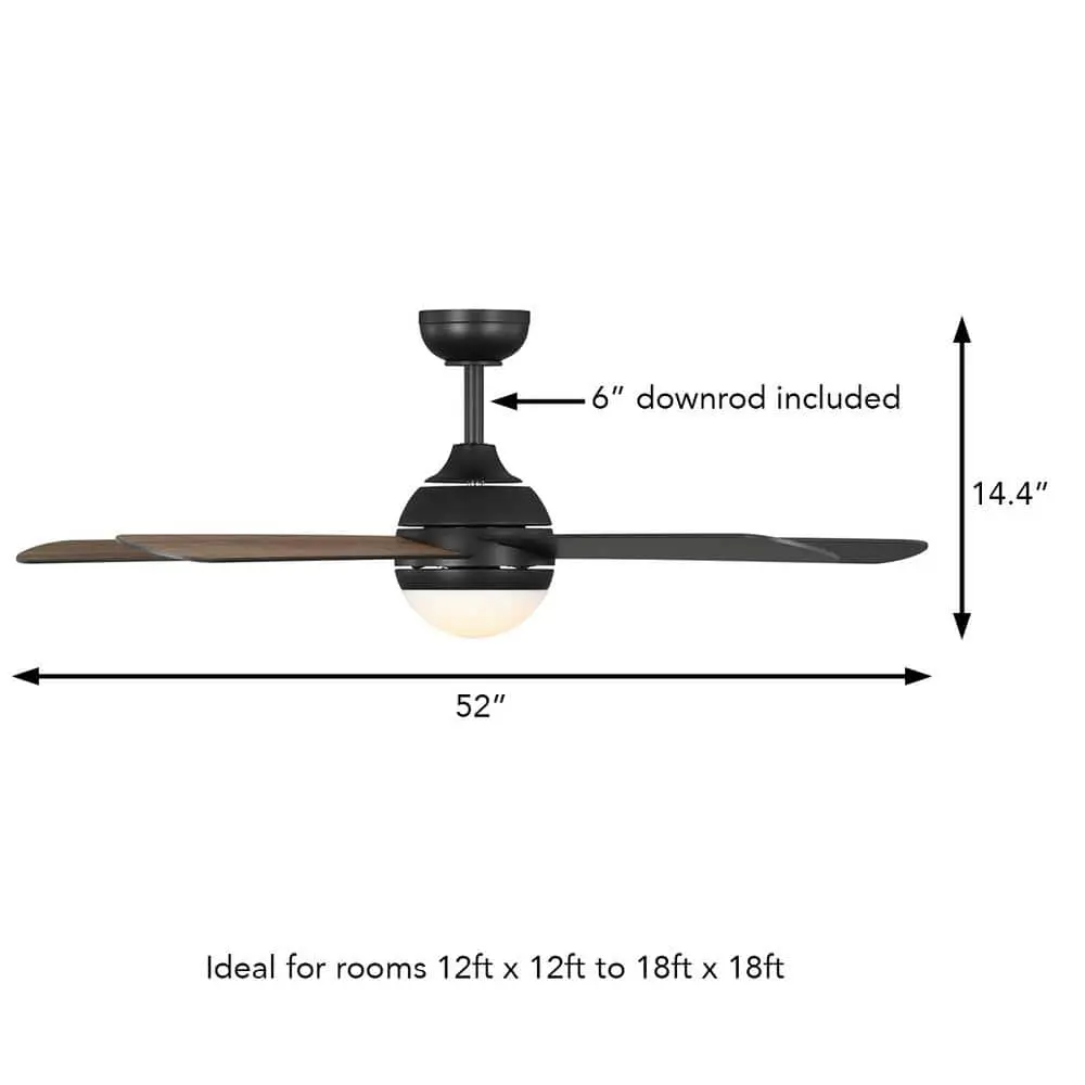 The 52-inch Morland Smart Ceiling Fan by Hampton Bay is a perfect addition to your smart home setup. It offers multiple control options: a remote control (included), the Hubspace App on your smart device, or voice commands via Alexa or Google Assistant. Combining modern design with advanced technology, this fan enhances both indoor and covered outdoor spaces. Its matte black finish pairs beautifully with five reversible blades in matte black and brown oak finishes. The dimmable integrated LED light kit includes a frosted, shatter-resistant plastic shade and six adjustable color temperatures, ranging from warm white (2700K) to daylight deluxe (6500K). Powered by a quiet, efficient DC motor, the fan offers six speed settings and is reversible for year-round comfort and energy savings.