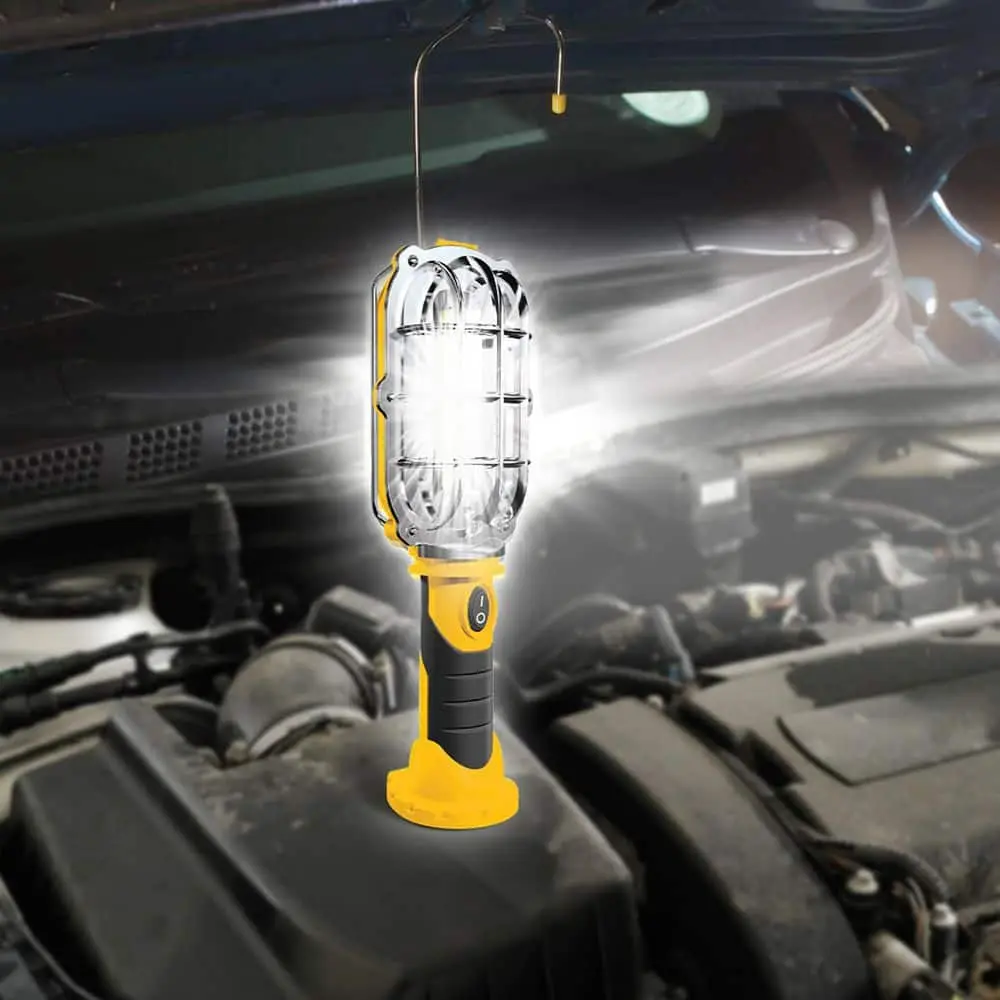 HANDY BRITE is a compact, lightweight, and ultra-bright cordless LED work light designed to deliver powerful illumination wherever you need it. Say goodbye to bulky cords and heavy work lights—HANDY BRITE offers quick, easy lighting with its hands-free design. It features a swivel hook for hanging, a magnetic base to attach to metal surfaces, and a wide base for standing on flat surfaces. With 500 Lumens of brightness from its ultra-bright LEDs, it’s perfect for a variety of tasks.