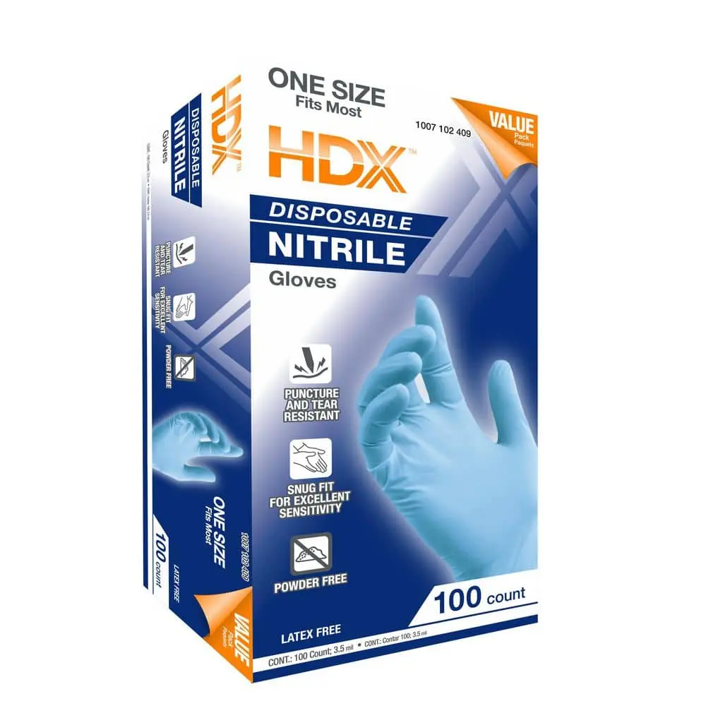 For messy tasks or simply protecting your hands, the HDX Disposable Nitrile Gloves are the perfect choice. These 3.5 mil, blue nitrile gloves are puncture-resistant and provide a snug, second-skin fit to keep your hands clean and dry. Whether you're deep cleaning, mopping floors, or scrubbing tough surfaces, these durable gloves offer reliable protection, comfort, and confidence. Latex-free, they’re a great option for those with latex allergies, ensuring worry-free protection.