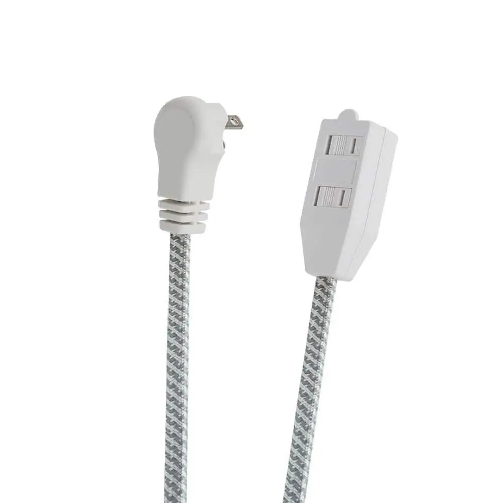 The HDX 12 ft. 16/2 Braided Extension Cord offers convenience and functionality with 3 polarized outlets, making it ideal for table lamps, floor lamps, small appliances, phone chargers, and other electronic devices. Each outlet is equipped with a safety cover for enhanced protection. The 12 ft. durable fabric cord provides a stylish and tangle-resistant solution, perfect for your home or workspace. The low-profile 45° flat plug saves space and allows furniture or media to sit closer to the wall. This cord has a 13 Amp, 125-Volt, and 1,625-Watt electrical capacity for reliable performance.