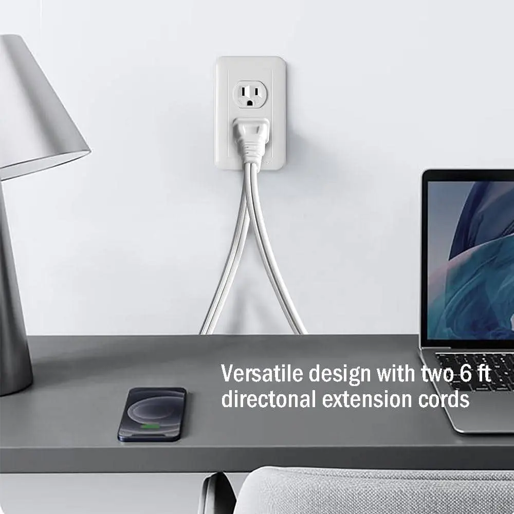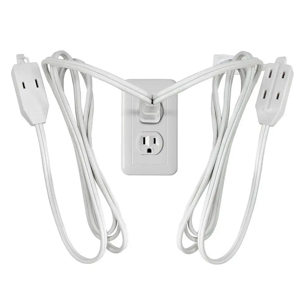 This HDX electrical cord splits from a single 2-prong plug into two 6 ft. 16/2 extension cords, each featuring a 3-outlet cube tap on the end. The dual cord design provides convenient power for multiple small appliances or devices in the same space, making it perfect for bedrooms, living rooms, offices, or any area needing additional outlets. It offers a durable, light-duty construction with a 13 Amp, 125-Volt, and 1,625-Watt electrical capacity.