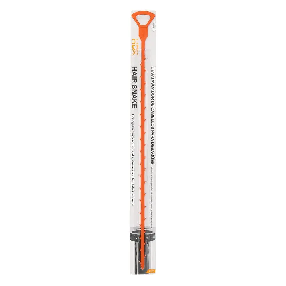 The 20 in. Hair Snake is a quick and simple solution for clearing clogged and slow-running drains. Made from durable plastic, it is designed for use in most household sinks, showers, and tub drains. This tool is safe, reliable, and easy to use.