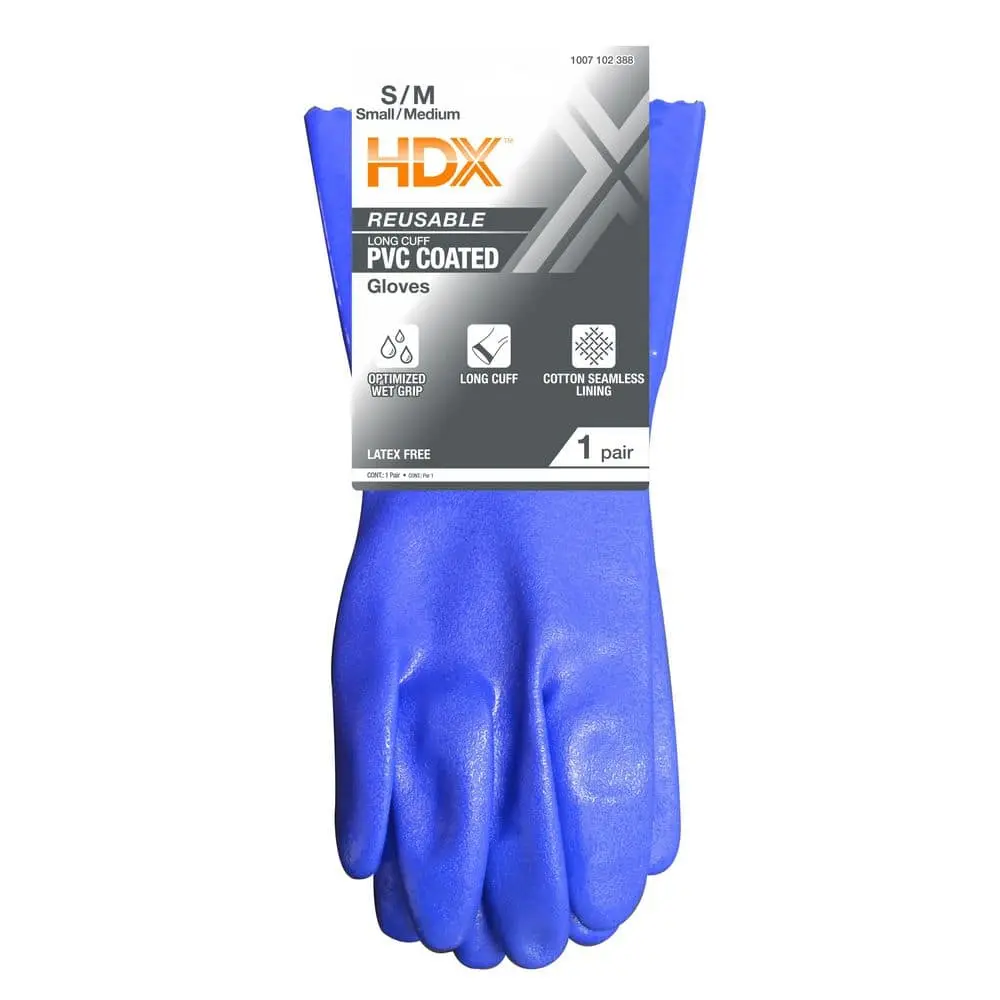 These HDX Blue PVC Large Multi-Purpose Gloves are moisture-resistant and offer extended protection against household cleaning hazards, thanks to their water-resistant long cuff design. They're perfect for both everyday cleaning and heavy-duty tasks.