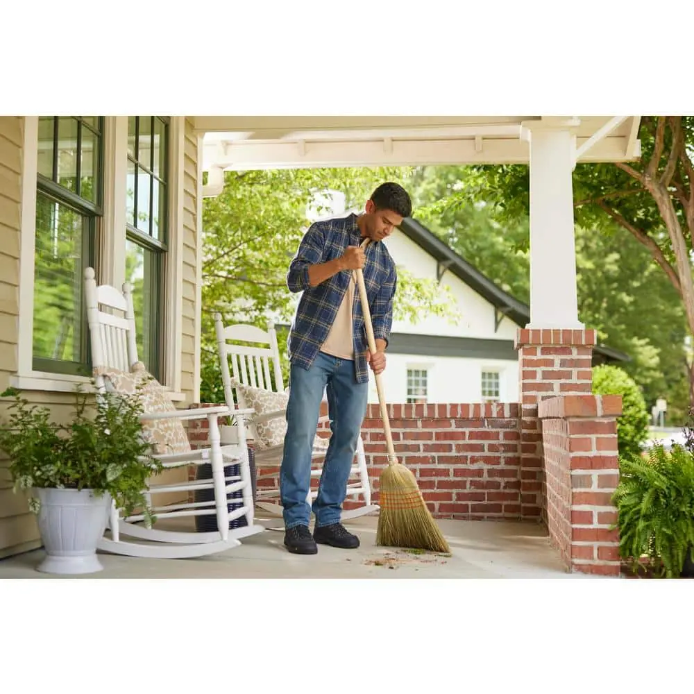 The Giant Commercial Corn Broom is a high-quality, heavy-duty broom designed with superior fiber weight for efficient dirt and dust pickup. It features an extra-wide 15-inch sweep path for a broader cleaning area, allowing for quicker and more effective clean-ups. The sturdy metal wire enhances its durability and strength.