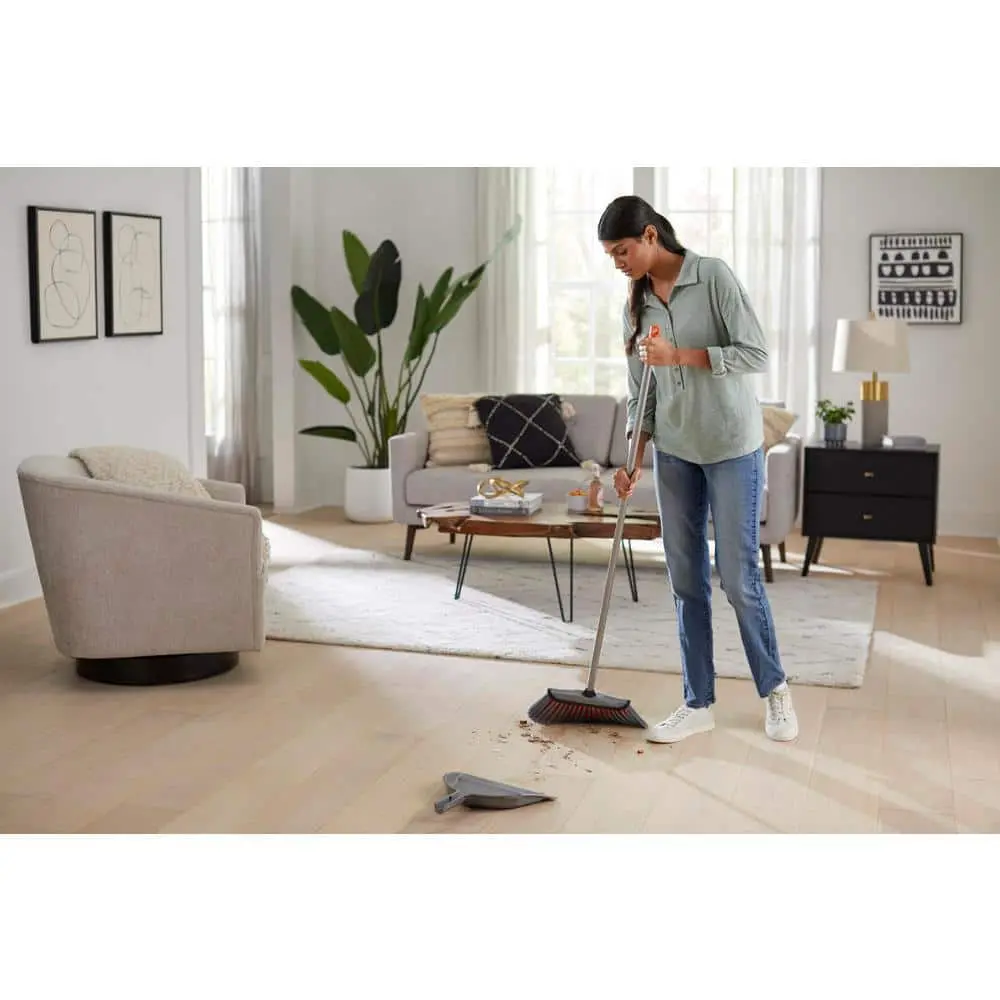 The HDX Broom offers an efficient and effortless sweeping experience with minimal effort. Its soft, smooth bristles are ideal for picking up pet hair, dirt, and dust from floors. Perfect for use on wood, tile, and linoleum surfaces, it comes with a 13-inch dustpan featuring a rubber lip for quick and easy dirt collection—no mess left behind. The dustpan also has shark teeth on the sides to help remove hair and dirt from the broom bristles.