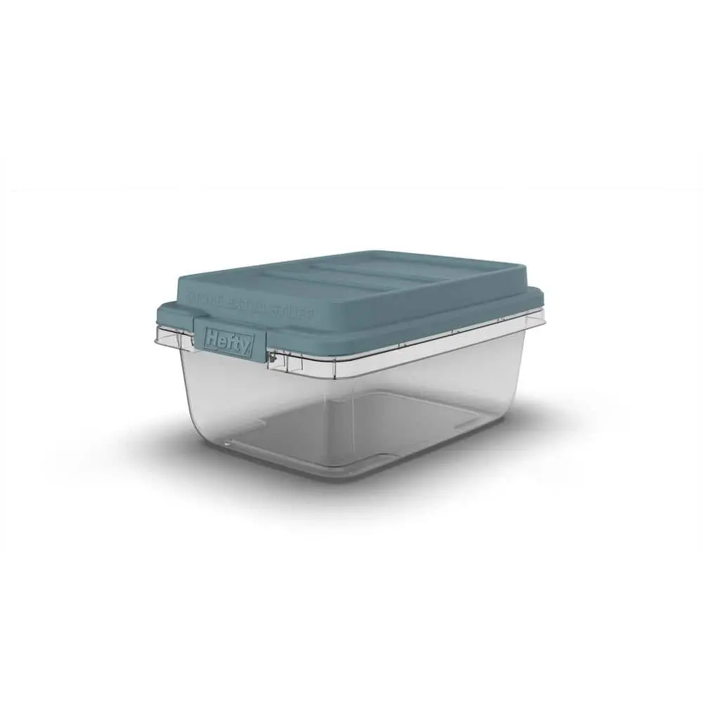 The Hefty 18 qt. Storage Bin offers a compact yet versatile storage solution with its durable plastic construction and secure snap-on lid. Its stackable design helps optimize space, making it perfect for organizing household, office, or garage items. Whether storing seasonal decorations, office supplies, or tools, this bin provides a reliable and efficient way to keep items protected and neatly arranged