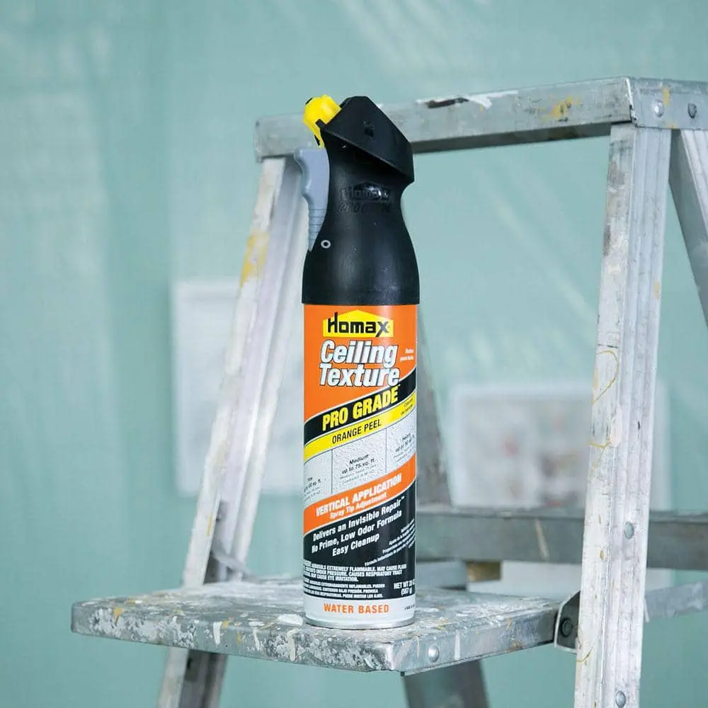 Homax Pro Grade 20 oz. Orange Peel Ceiling Waterbased Texture creates a beautiful orange peel finish, giving your ceilings a textured, professional look. The water-based formula allows for easy cleanup using soap and water, making it a hassle-free option. With its quick drying formula, you can complete your repairs or projects faster. The texture is durable, offering long-lasting results that resist cracking and peeling. This product is also versatile, perfect for both repairs and creating new ceiling textures