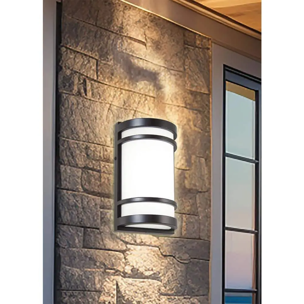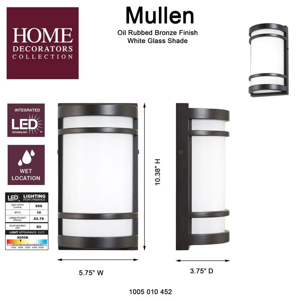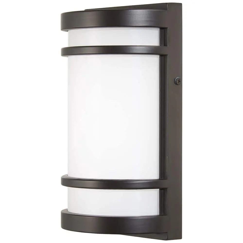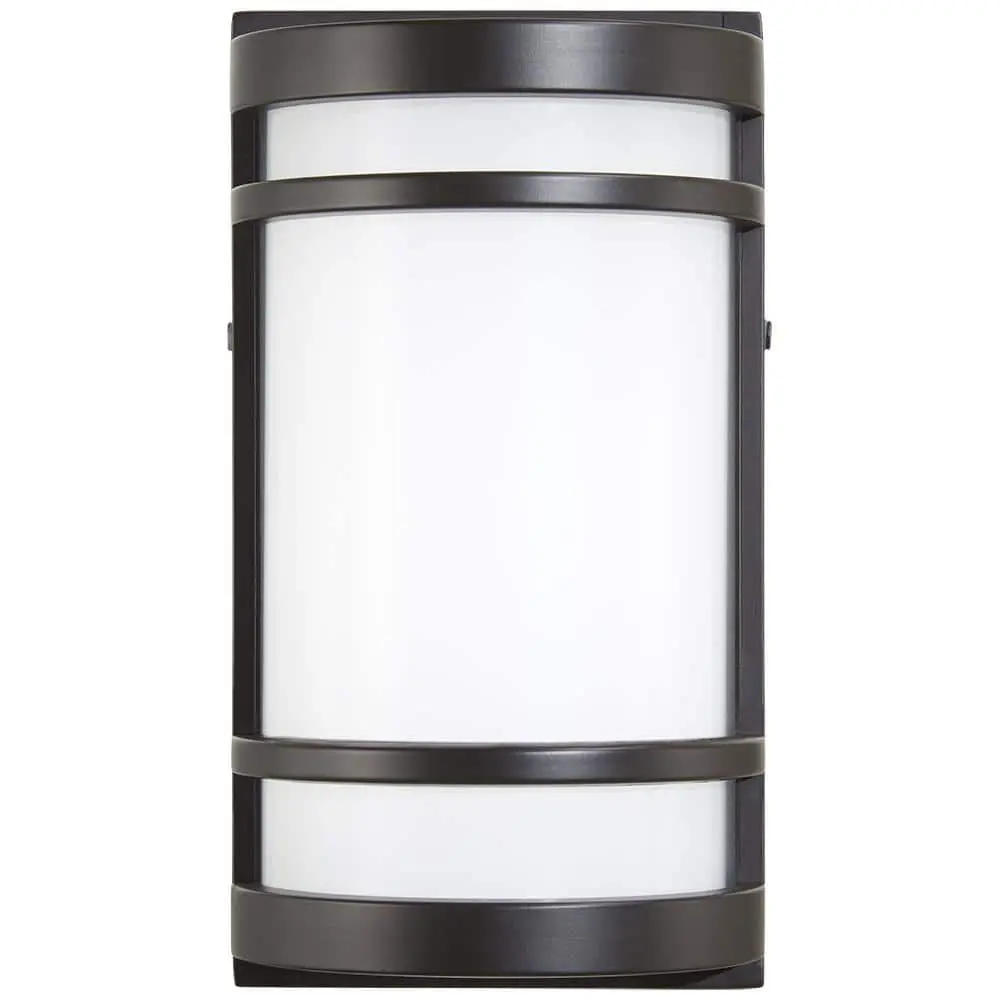 The Home Decorators Collection LED Outdoor Wall Mount Lantern offers a sleek and modern design. The oil-rubbed bronze finish paired with the white glass shade creates a striking contrast, bringing a fresh look to your outdoor space. Featuring an integrated LED module, this fixture eliminates the need for bulb replacements, ensuring minimal maintenance.
