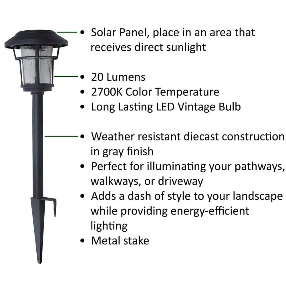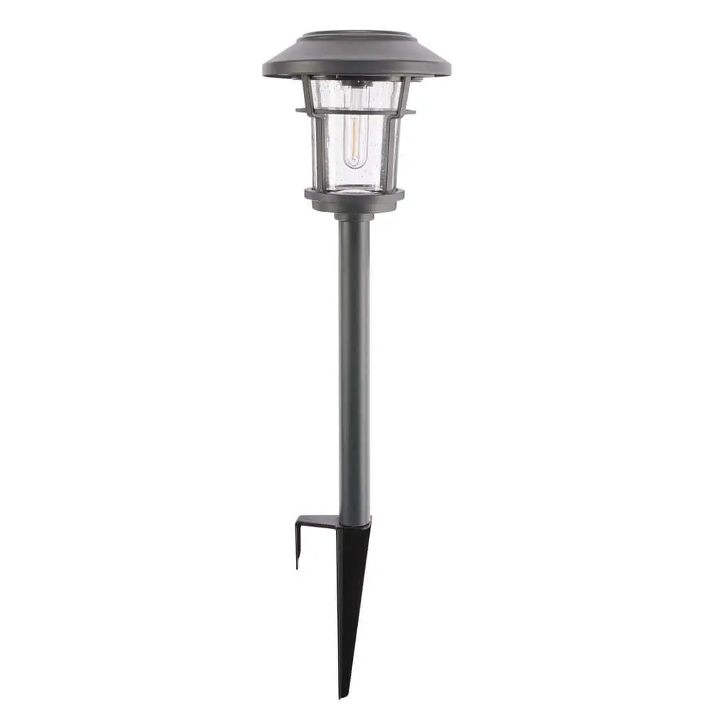 Enhance your outdoor space with this Gray Solar LED Pathway Light, featuring a stylish seeded glass lens that casts a beautiful glow along walkways. Designed to add charm and elegance while improving nighttime safety, these solar-powered lights can be placed anywhere that receives sunlight. With no wiring required and energy-efficient LED bulbs, they offer hassle-free installation and minimal maintenance.