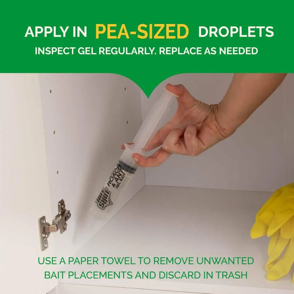 Hot Shot Ultra Clear Roach & Ant Gel Bait is an effective, ready-to-use water-based solution for controlling roaches and ants indoors. This clear gel bait works quickly, killing ants and roaches within minutes, including the queen and entire colony, as well as the eggs they carry. It dries clear and continues to work for up to three months. Simply use the included syringe to apply pea-sized droplets of the gel in cracks and crevices where pests are present. When the pests consume the gel, they return to the nest and die within 24 hours. For best results, inspect and replace the bait as needed. Please note, this product does not control carpenter, pharaoh, harvester, or red imported fire ants.