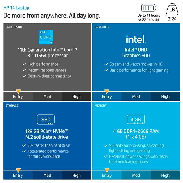 Stay productive and connected wherever you go with the HP 14" Laptop. Engineered for portability and performance, this sleek and lightweight device is powered by an Intel® processor and features a vibrant micro-edge display. Whether you're working, streaming, or browsing, this laptop has you covered with reliable power, long battery life, and fast charging capabilities.