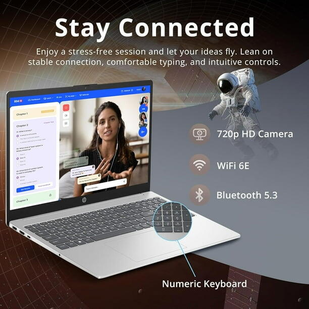 - HP True Vision 720p HD webcam with dual array microphones for quality video calls
