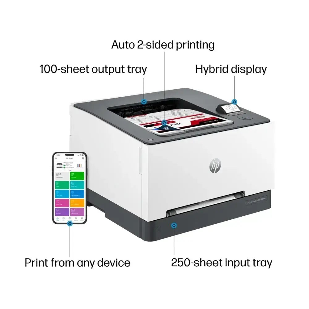 The HP LaserJet Pro 3201dw Wireless Color Laser Printer combines efficiency and high-quality printing in a sleek design. Featuring wireless connectivity, it allows for easy printing from multiple devices, providing added flexibility for your workspace. The color laser printing ensures sharp, vibrant results for professional documents. Its compact design with a stylish White & Slate finish fits seamlessly into any environment. With automatic two-sided printing, it helps save paper while increasing productivity. The printer also supports mobile printing via Apple AirPrint, Google Cloud Print, and more, making it convenient for users on the go.