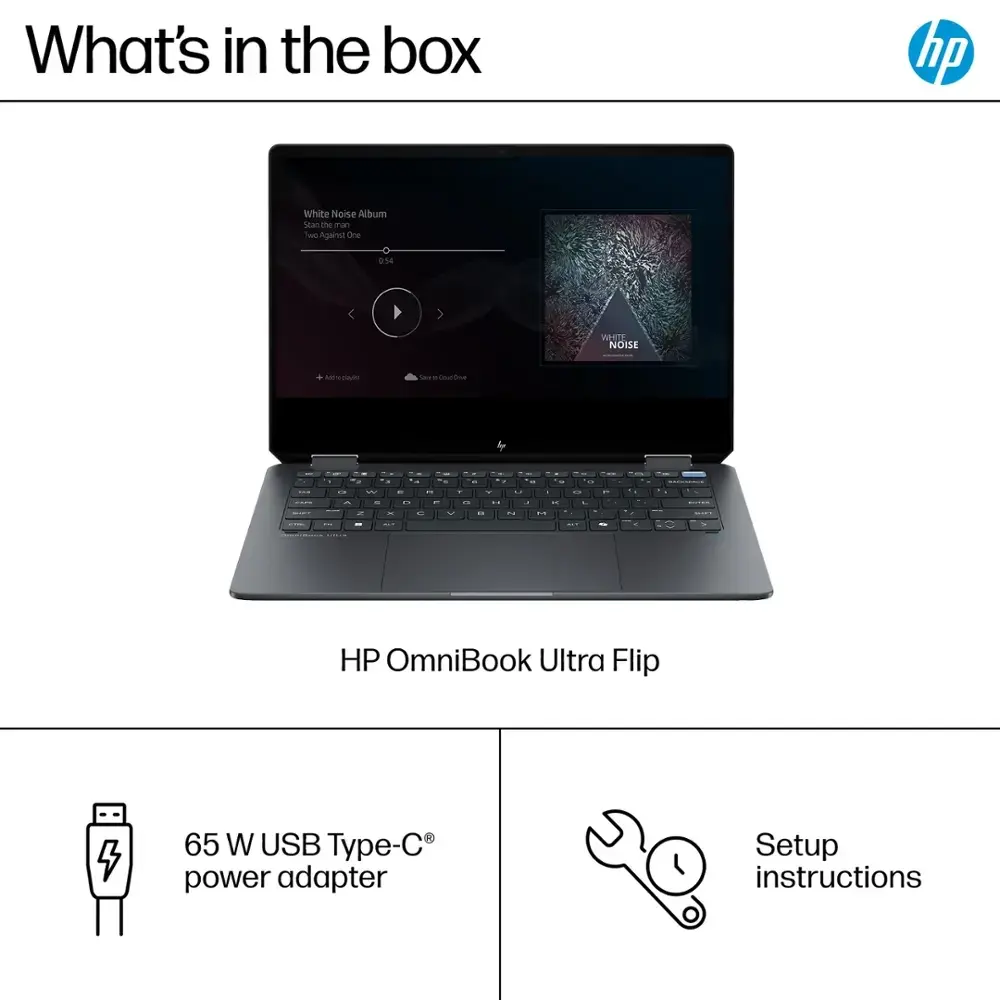 The HP OmniBook Ultra Flip 14" 3K OLED Touch-Screen Laptop combines style and performance for an exceptional user experience. Featuring a 14" 3K OLED touch-screen, it delivers vibrant, sharp visuals for both work and play. Powered by the Intel Core Ultra 7 processor, this laptop ensures fast and efficient performance for all your tasks. With 16GB of memory and a 1TB SSD, you'll enjoy seamless multitasking and quick access to your files. The Copilot+ PC integration boosts productivity with AI-driven features, while the Eclipse Gray finish gives it a sleek, modern look. Its ultra-portable design and long battery life make it perfect for those always on the move