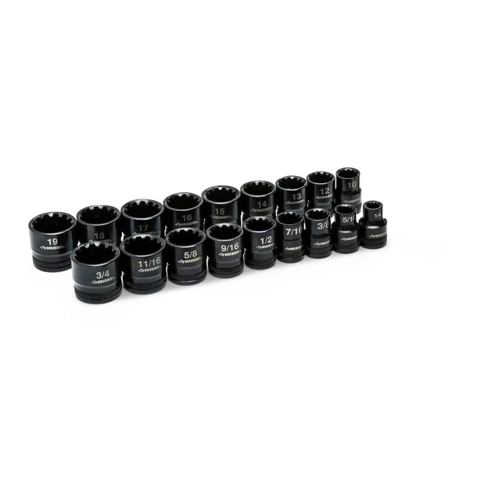 The Husky 100-Position 3/8 in. Drive Universal Socket Wrench Set (26-Piece) offers a versatile selection with its 26-piece set, featuring a variety of socket sizes for different tasks. The 100-position ratchet allows for greater flexibility, making it easy to work in tight spaces. The 3/8 in. drive is compatible with most standard sockets, and the universal socket design ensures it fits multiple fastener types. Built with durable construction, this set is designed for long-lasting performance, providing reliable use for a wide range of projects