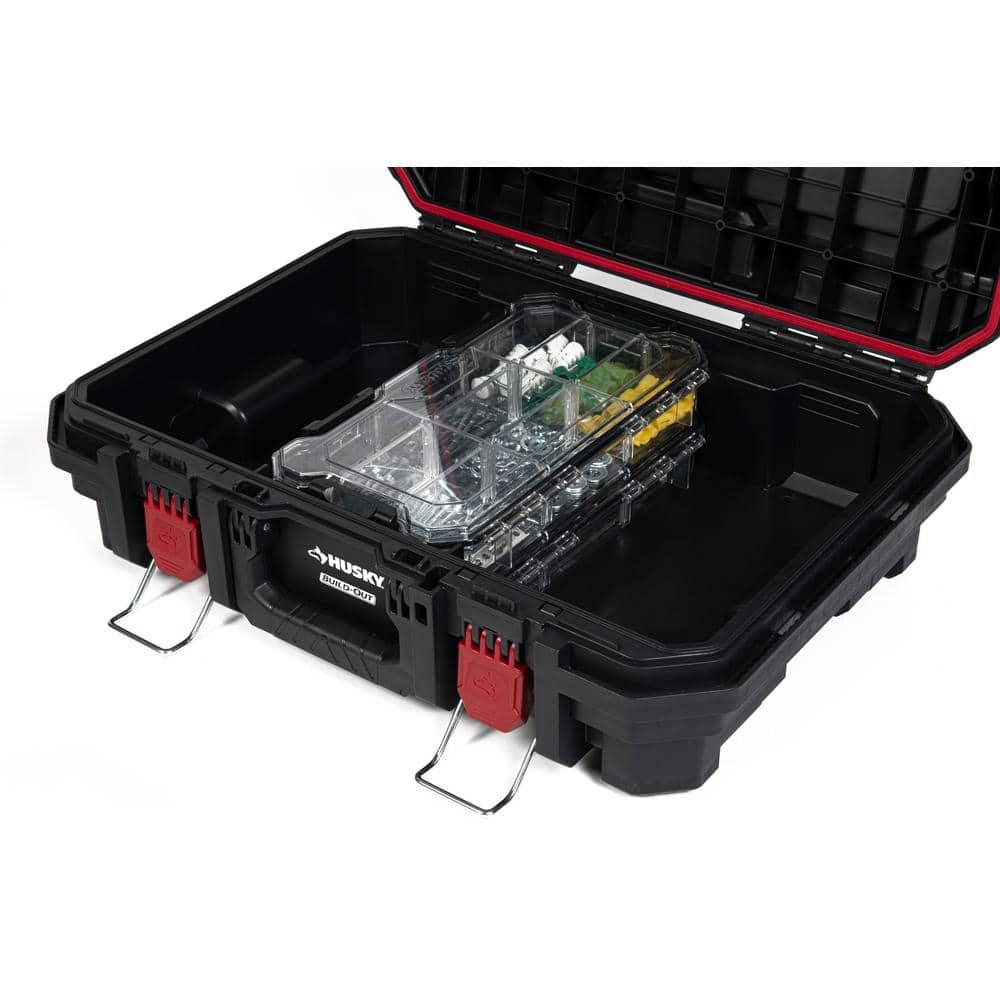Keep your components safe and secure from the elements with the Husky 12-Inch Waterproof Storage Bin. This durable and versatile bin is designed to protect your tools and equipment from dust, water, and other environmental hazards.Key Features:Watertight Protection: The IP65 rating ensures complete protection against dust and water, safeguarding your valuable items from the elements.Adaptable Storage: The removable dividers allow you to create custom compartments that perfectly suit your storage needs, making it easy to organize and access your tools and equipment.Secure Closure: The over-center latches and silicone O-ring seal provide a reliable and watertight seal, keeping your contents safe and secure.Robust Construction: Made from heavy-duty, industrial-grade polymer, this bin is built to withstand the toughest conditions and provide long-lasting durability.Versatile Integration: The transparent lid allows for easy visibility, and the bin is compatible with the Husky Build-Out system for added functionality and customization.