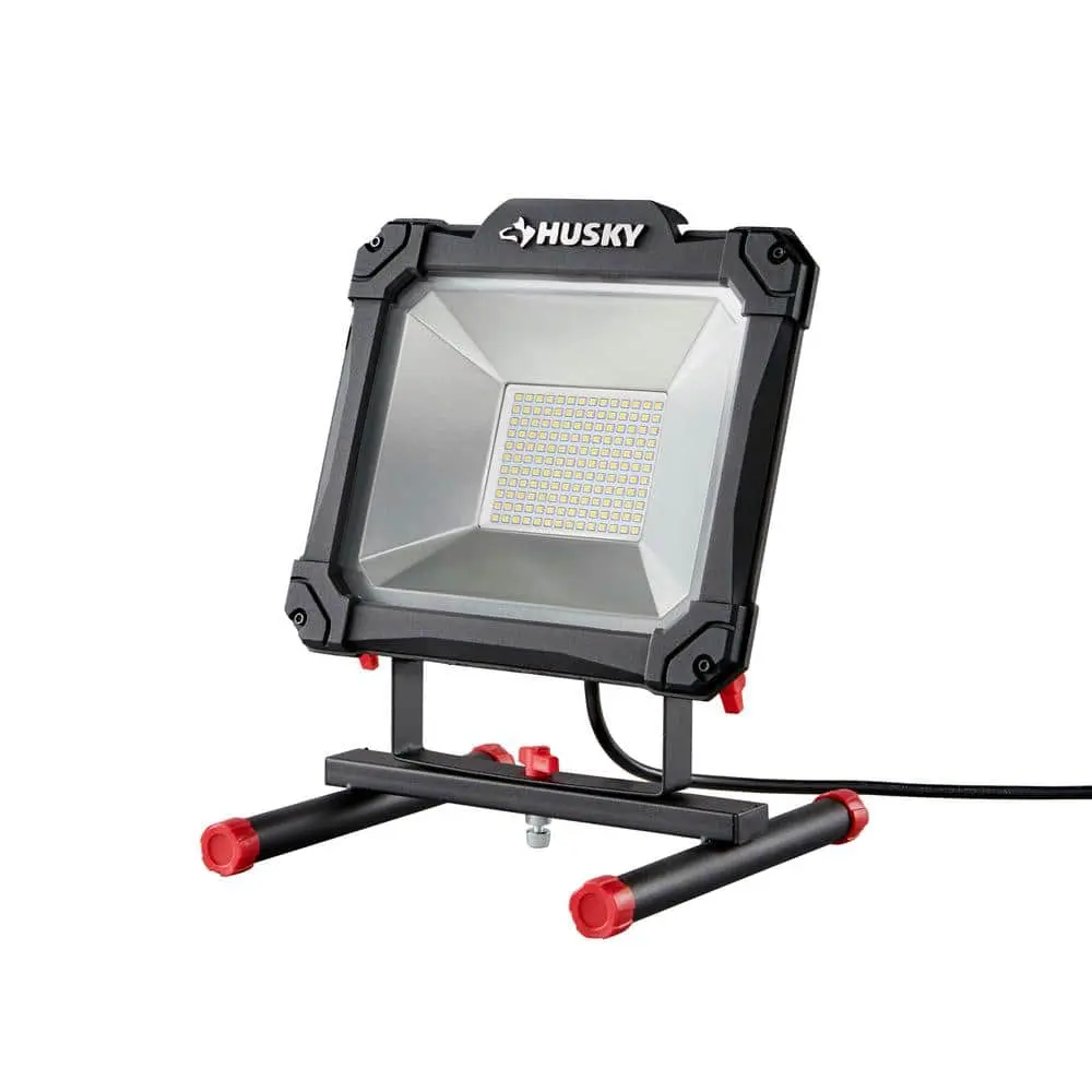This work light delivers an impressive 12,000 lumens of bright light from a single unit. Featuring a slim design and a 5 ft. grounded power cord, it's built for maximum portability. The adjustable, pivoting head allows for precise light placement, while the H-stand ensures stability during use.