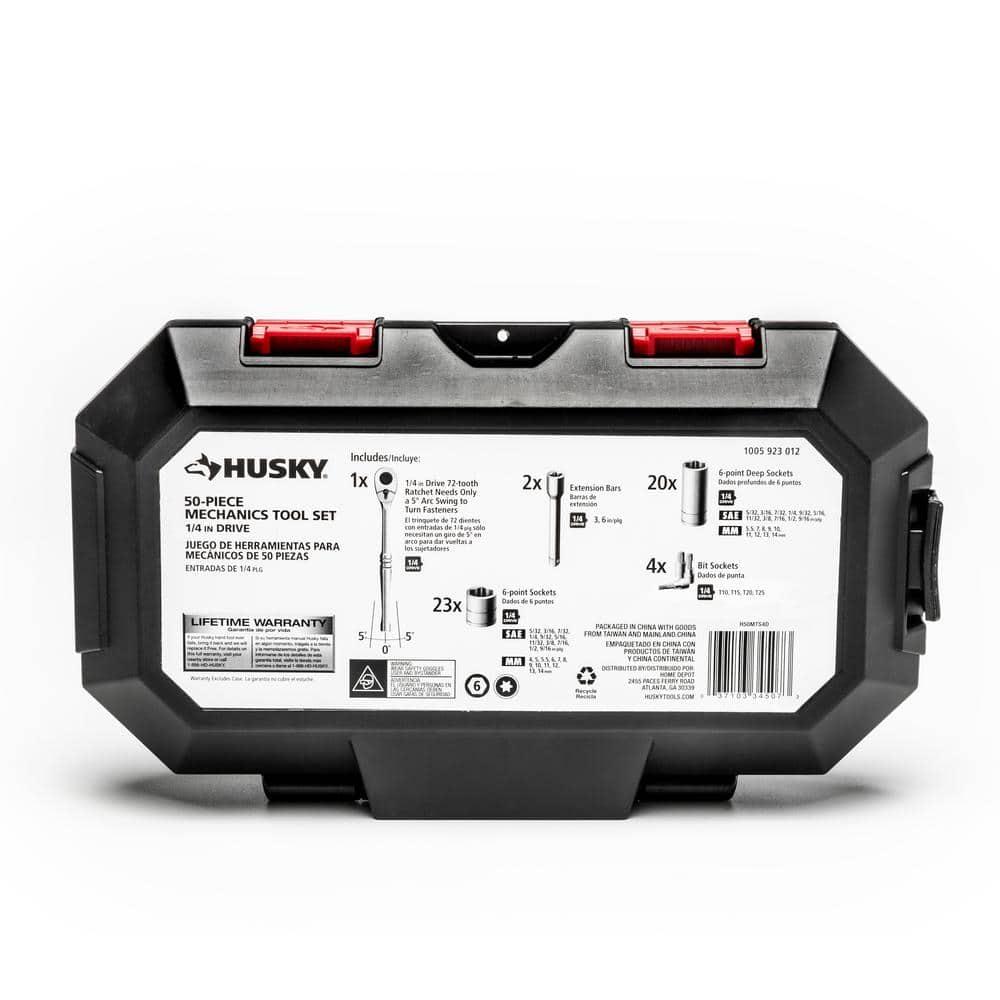 Introducing the Husky 50-piece 1/4 in. Drive SAE/Metric Socket Set, crafted from ultra-durable Chrome Alloy steel for exceptional strength and longevity. This comprehensive set includes 43 sockets and 4-bit sockets, making it the perfect companion for tackling a wide range of fastening and repair projects. Elevate your garage or home workshop with this versatile and high-quality set..jpg)