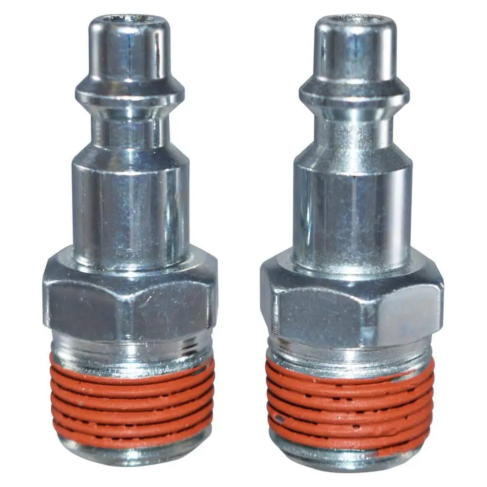 This 1/4 in. (IM) Plug - 3/8 in. NPT (M) is designed for quick and reliable connections to 1/4 in. industrial couplers. Constructed from durable steel, it ensures long-lasting performance. Each pack includes 2 couplers for added convenience.