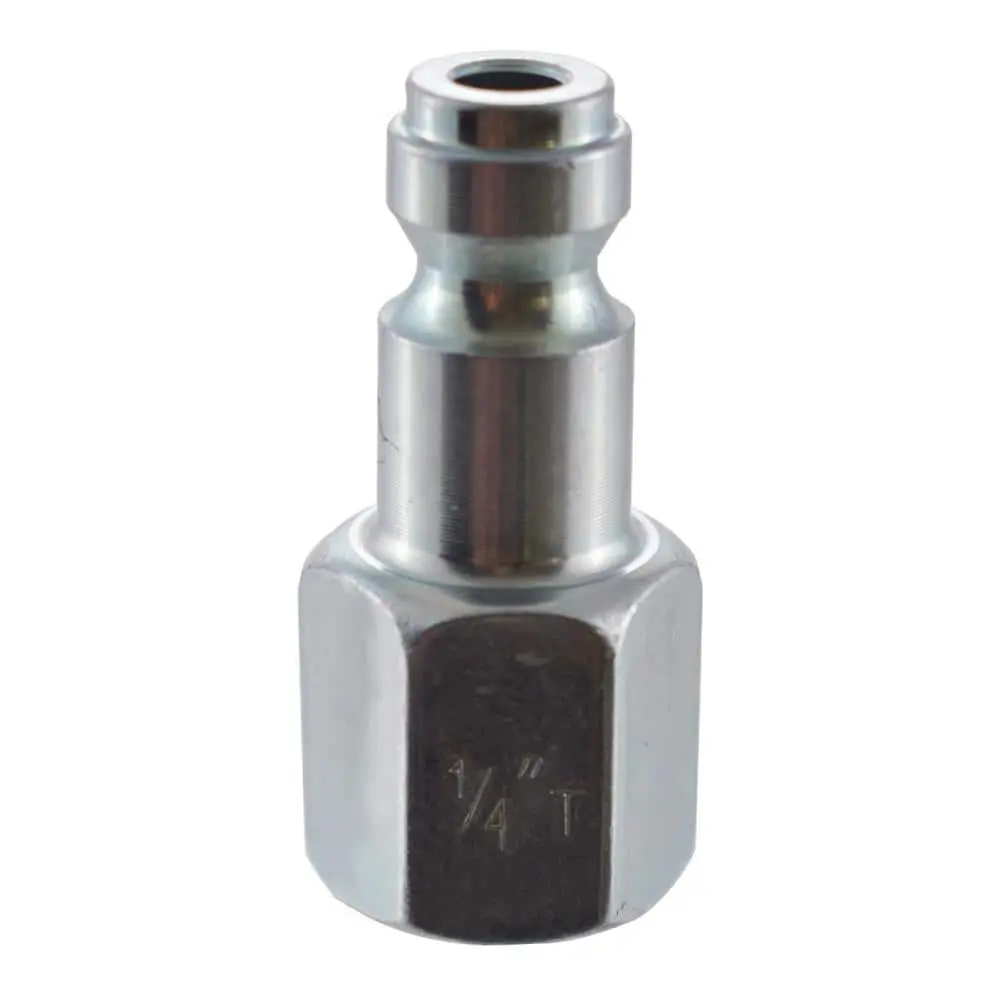 The Husky 1/4 in. NPTF Female Auto Plug is built for seamless connection between air compressor components. Constructed from heat-treated steel for enhanced durability and coated with zinc to resist corrosion, this plug ensures reliable performance. Designed for use with pressures up to 155 psi, it provides a secure and efficient connection.