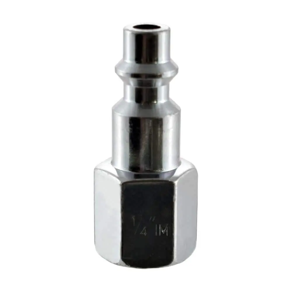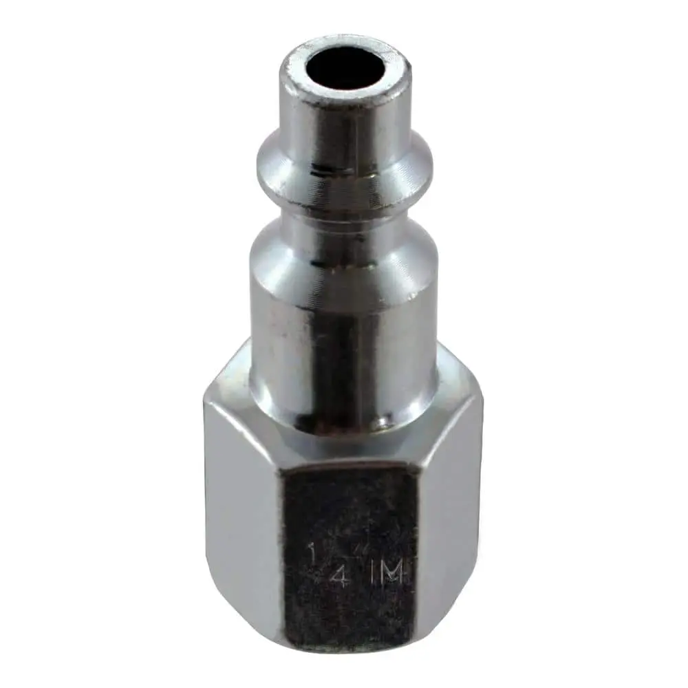 The Husky 1/4 in. x 1/4 in. NPT Female Industrial Plug simplifies connecting components to your air compressor. Built with heat-treated steel over brass, it ensures long-lasting durability. Designed for quick and easy tool changes, this plug works seamlessly with a matching coupler.