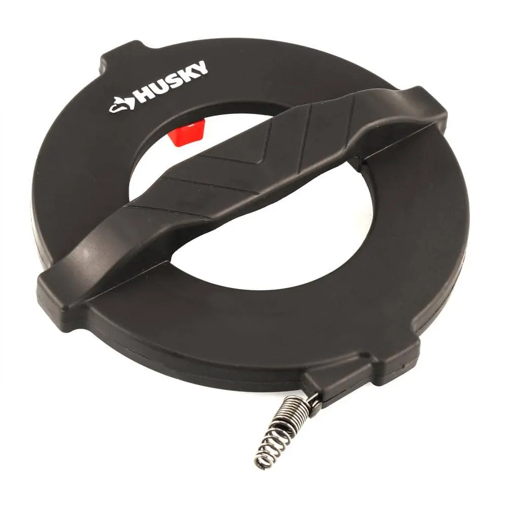 Ideal for tackling tough clogs in sinks, showers, and tubs, the Husky Encased Sink Cleaner is designed to clear drain lines from 1-1/4 in. to 2 in. in diameter, up to 20 ft. in length. Built for small household drains, it features oil-tempered spring steel that resists rust and corrosion for long-lasting durability. The tool comes in a convenient, self-storing poly case with an easy wind-up design.